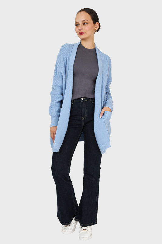 Sweater Acanalado Cuello Bote Celeste