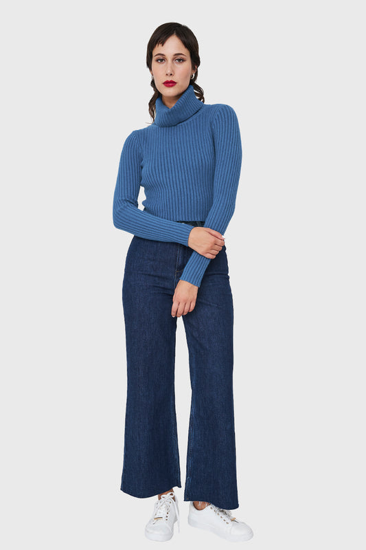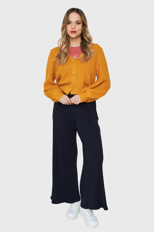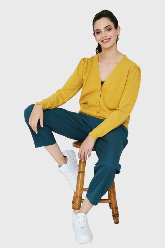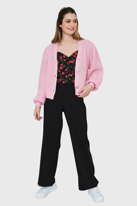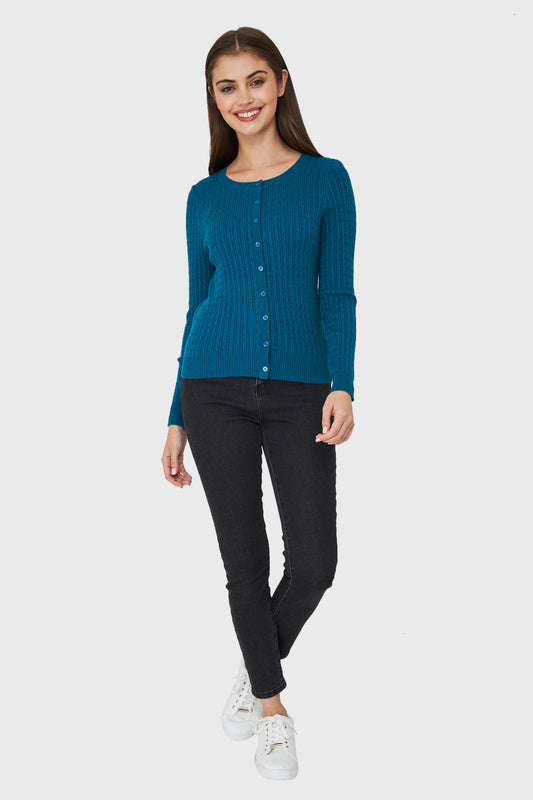Cárdigan Punto Fino Cadenetas Azul Petróleo