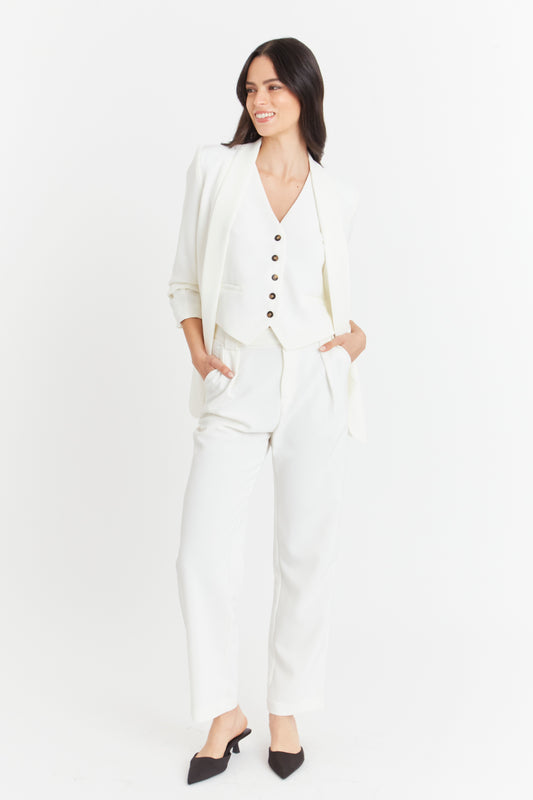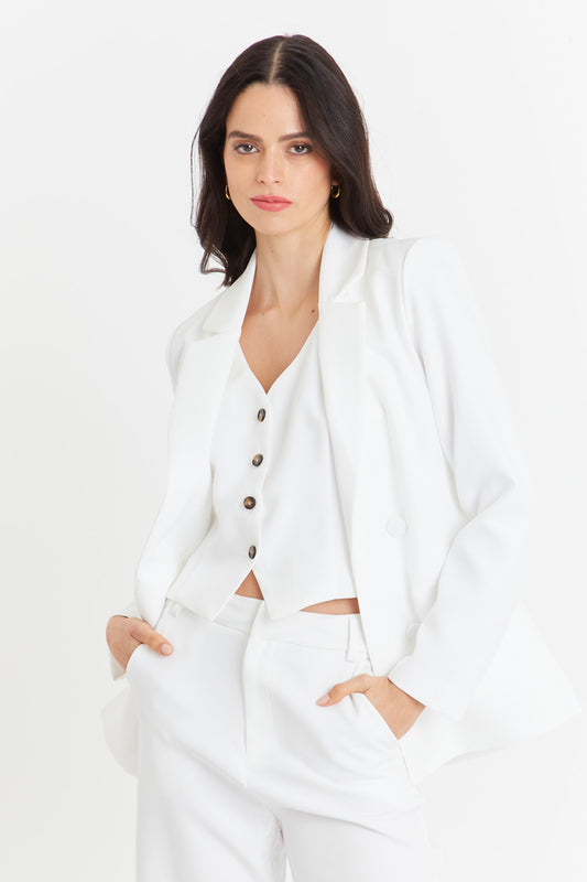 Blazer Manga 3/4 Ajustada Con Pliegues Blanco