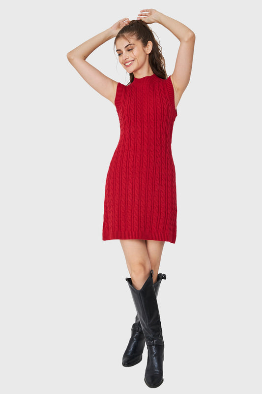 Vestido De Punto Trenzado Rojo