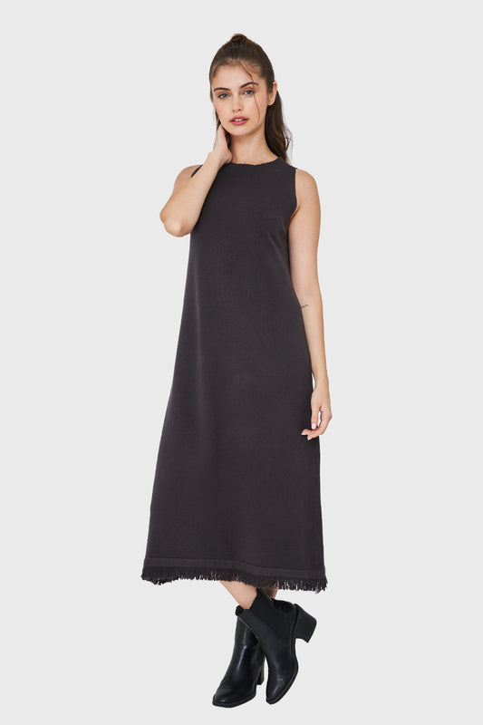 Vestido Tipo Tejido Holgado Flecos Grafito