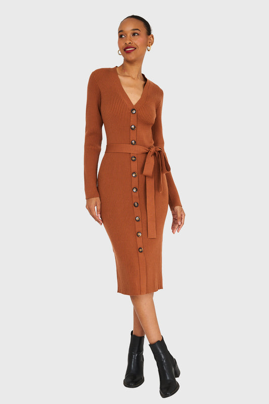 Vestido Sweater Midi Camel
