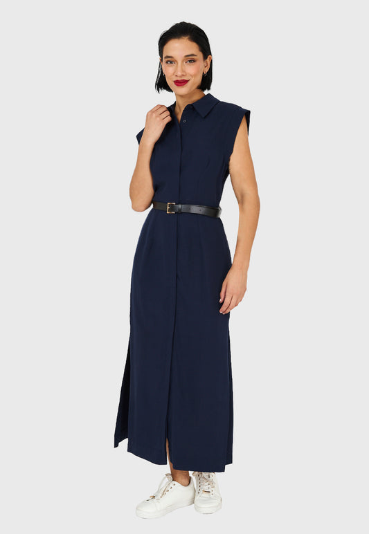 Vestido Camisero Cinturón Azul Marino