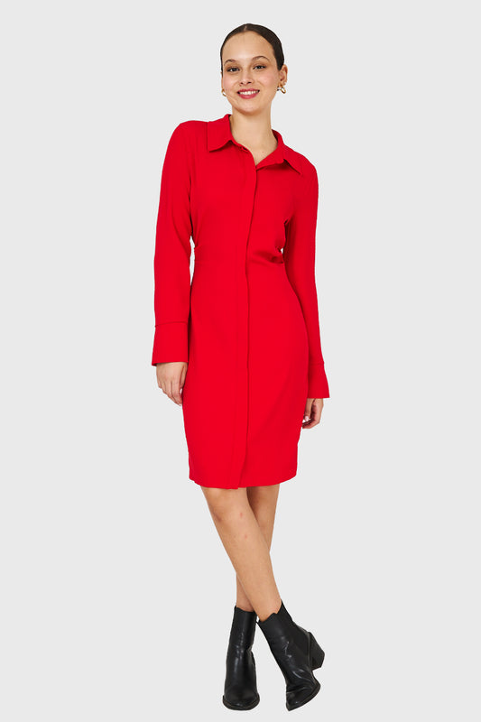 Vestido Pliegues En Cintura Rojo