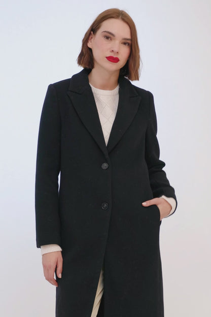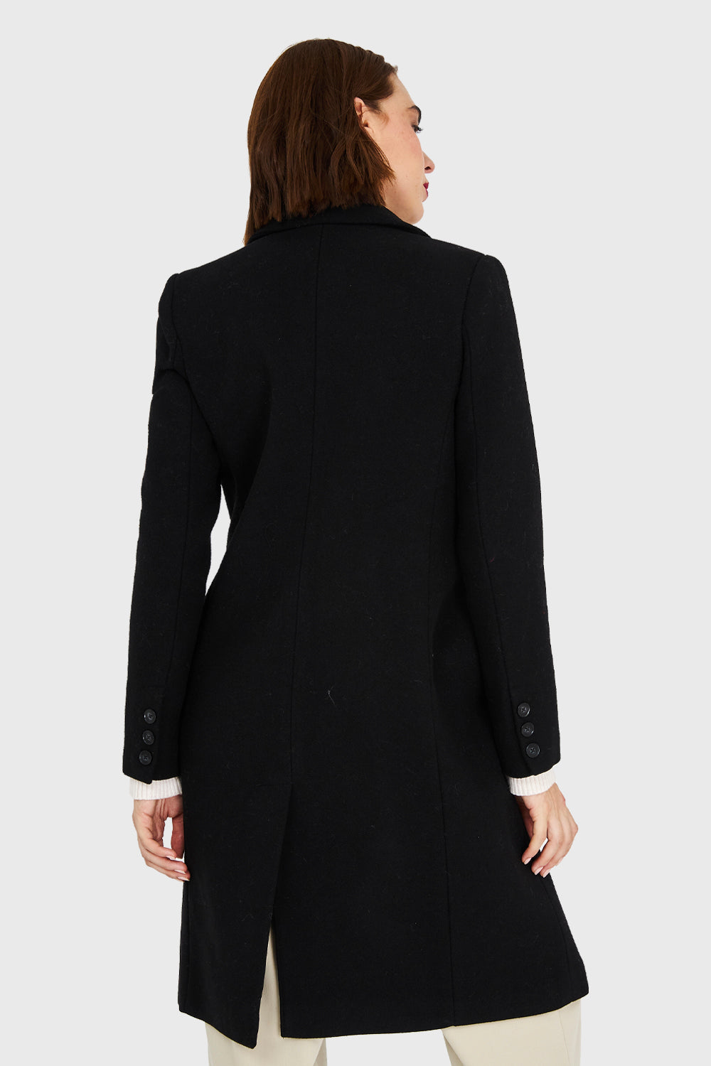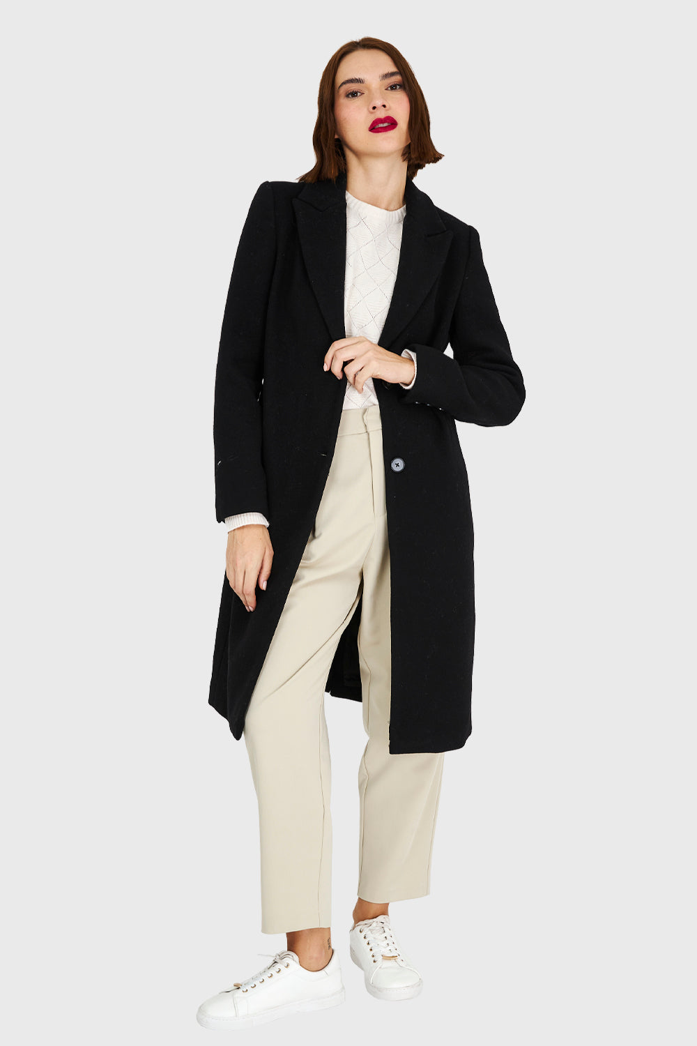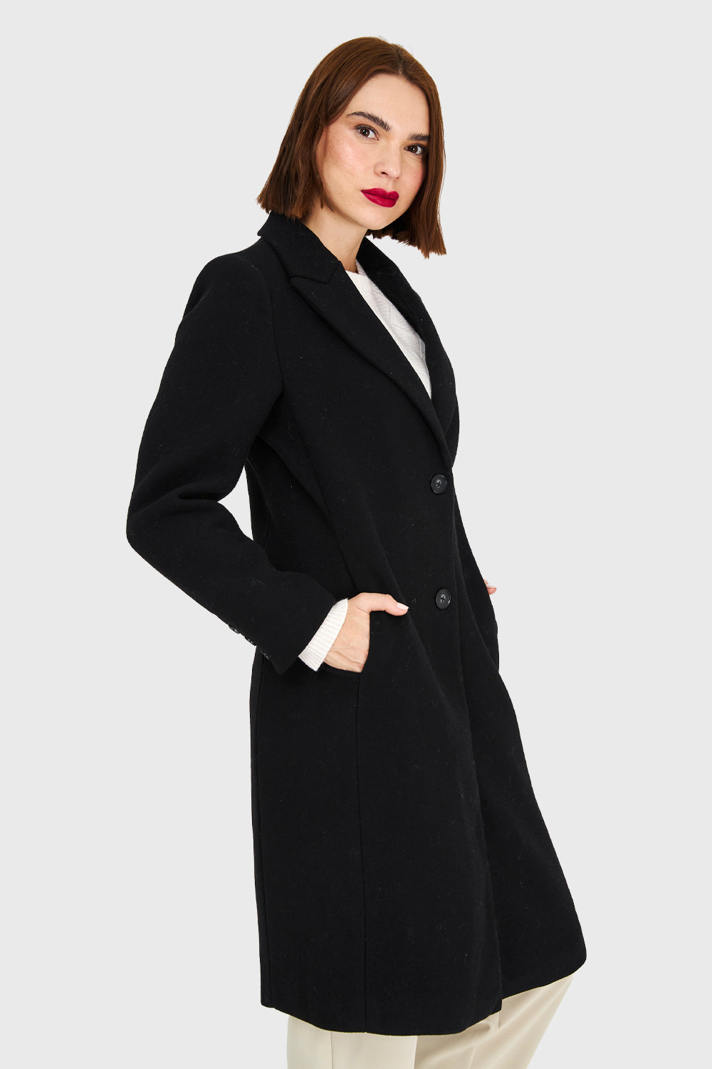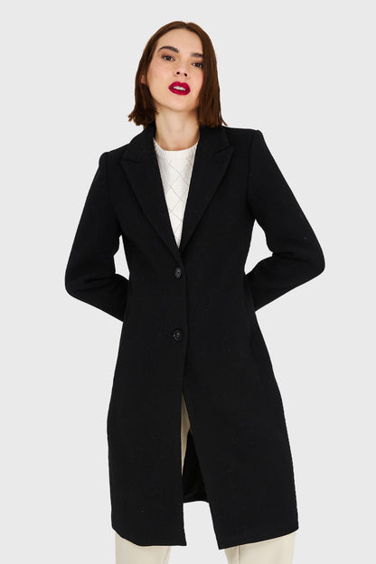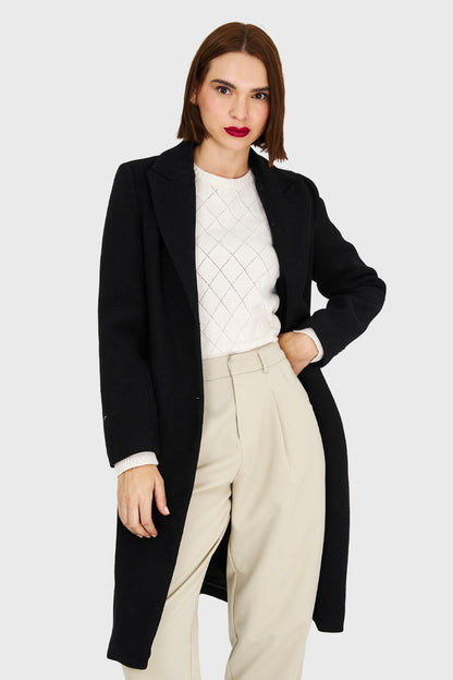 Características: Abrigo solapa muesca. 2 botones de ajuste, bolsillos invisibles a los costados. Posee hombreras y forro.