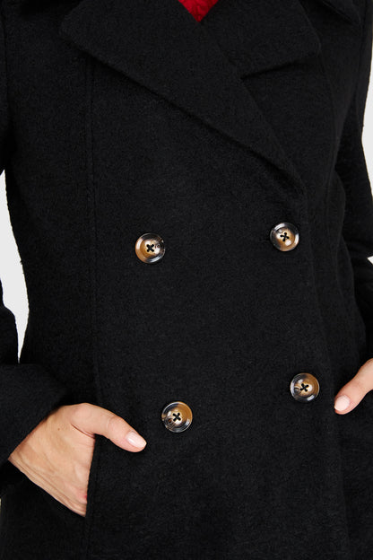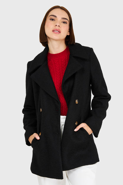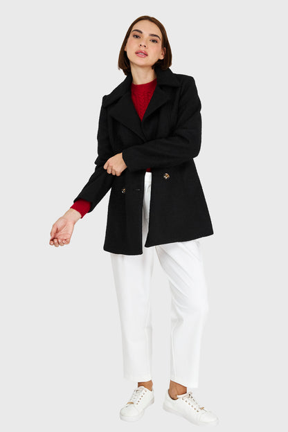 Características: Abrigo escote cruzado. Un botón interior y 2 botones de ajuste exteriores. Bolsillos invisibles al costado. Posee forro.