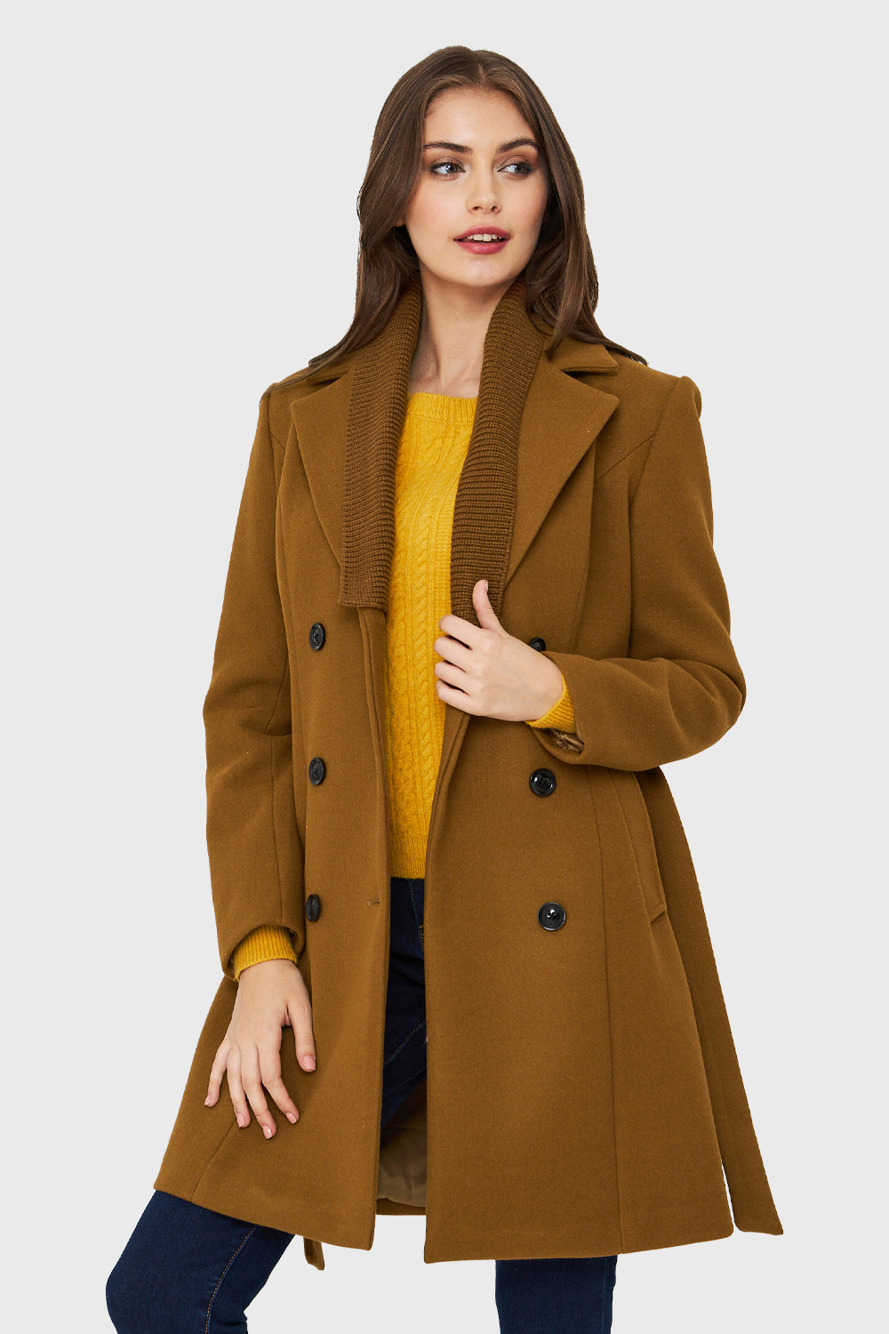 Características:Abrigo cuello desmontable con detalle tipo tejido. Lazo de ajuste y bolsillos a los costados. Botón interior y 3 botones frontales para un cierre cruzado. Posee forro y hombreras.