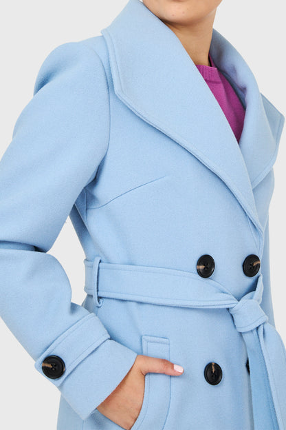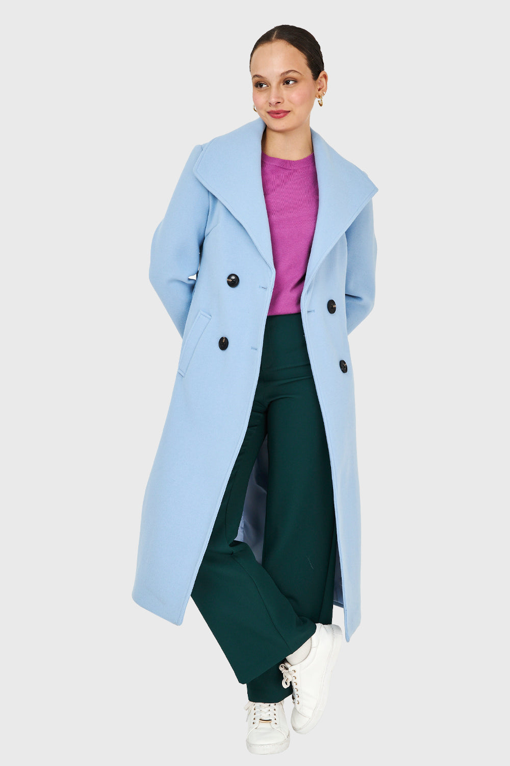 Características: Abrigo solapa cruzada con lazo de ajuste y hombreras. Botón interior y 2 botones externos de ajuste. Bolsillos al costado y tajo posterior en la basta. Posee forro.