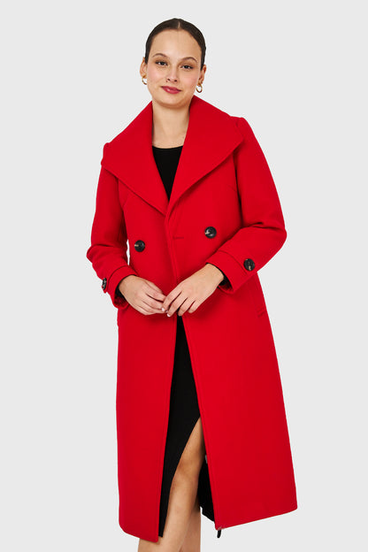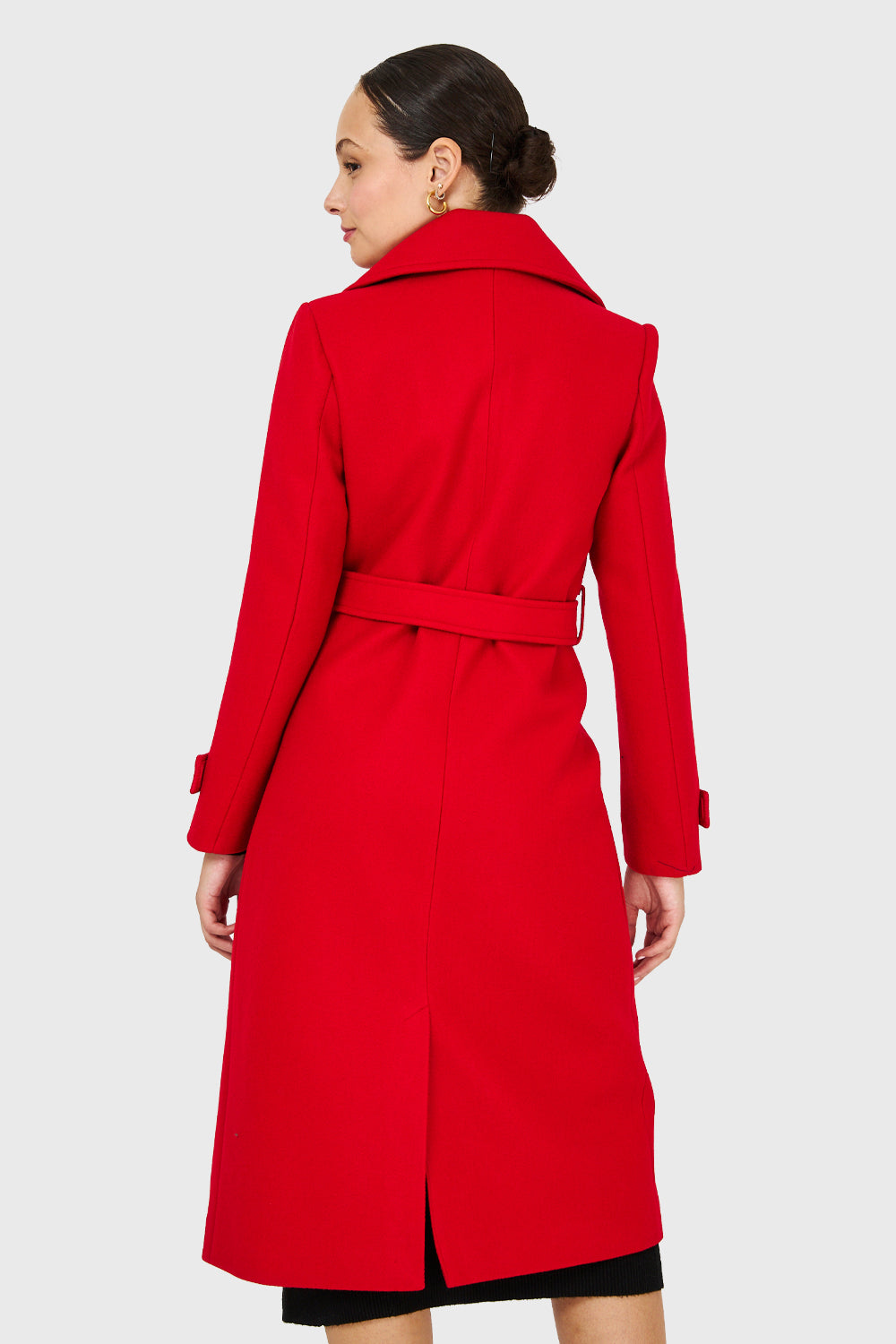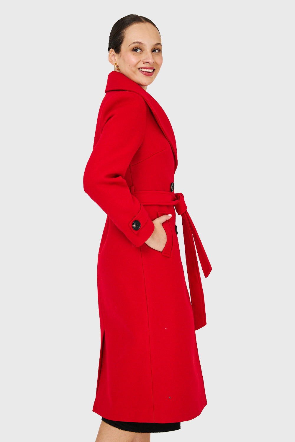 Características: Abrigo solapa cruzada con lazo de ajuste y hombreras. Botón interior y 2 botones externos de ajuste. Bolsillos al costado y tajo posterior en la basta. Posee forro.