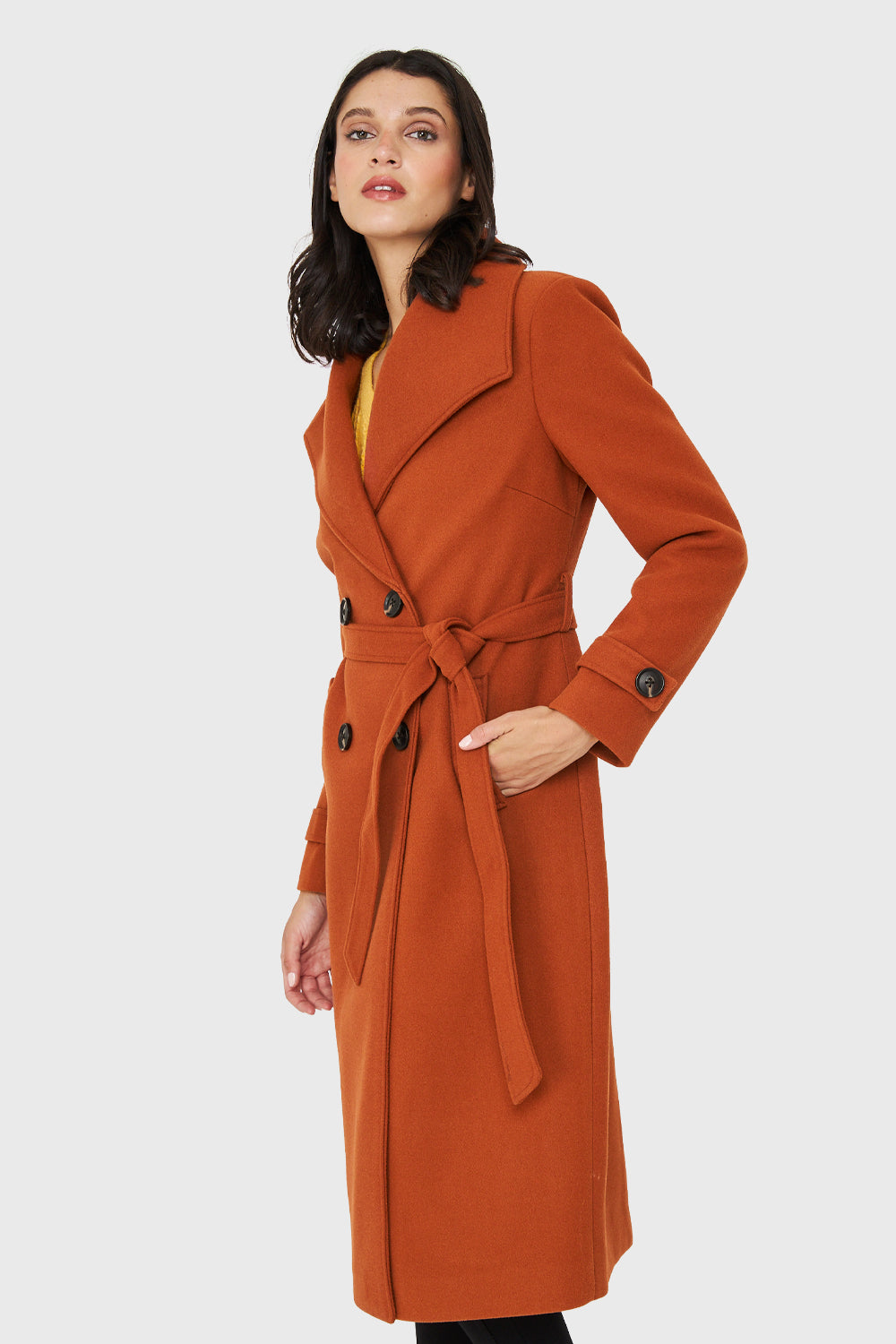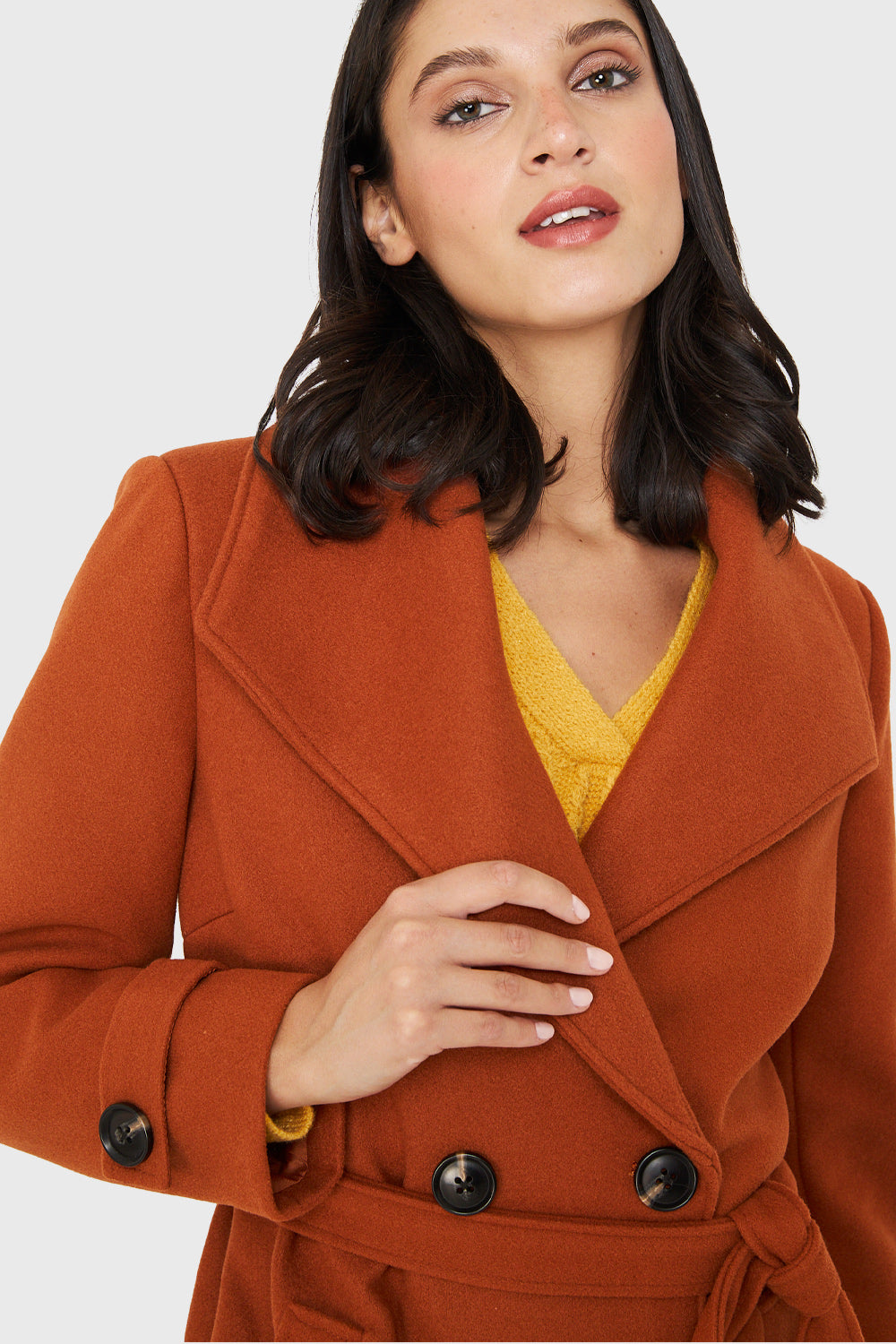 Características: Abrigo cruzado con lazo de ajuste y cuatro botones. Posee bolsillos laterales, tajo en la parte posterior y es forrado.