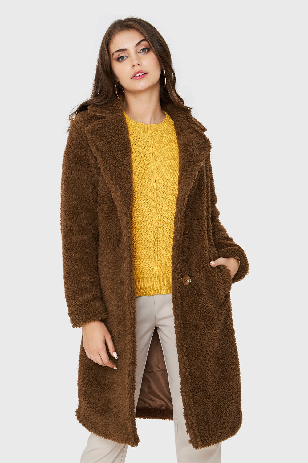 Características: Abrigo teddy largo con 2 botones de cierre. Bolsillos a los costados. Posee forro.