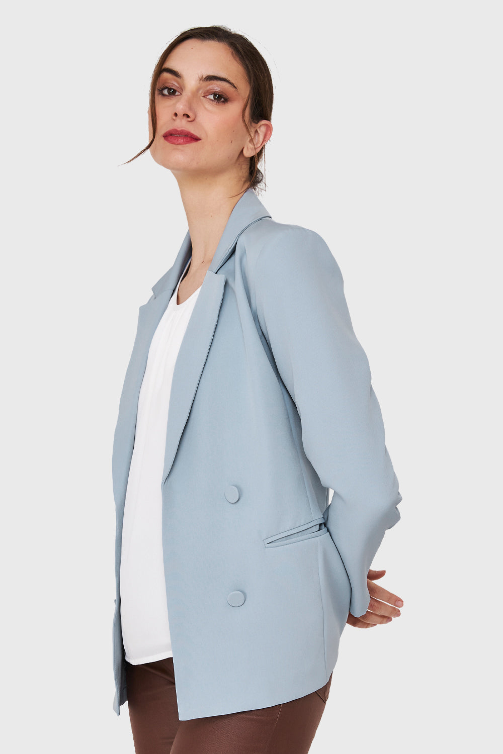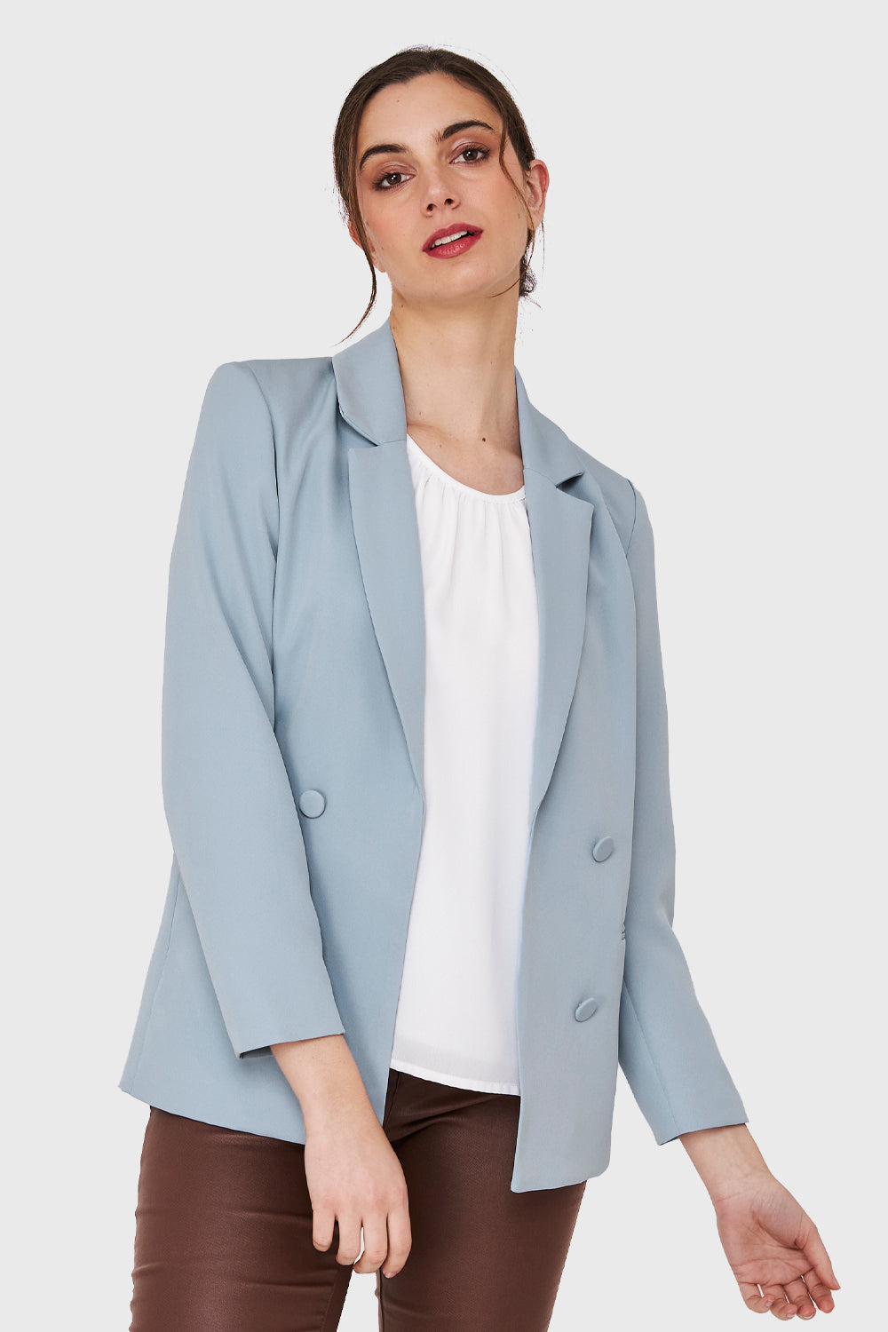 Características: Blazer de tope detalle 4 botones manga larga. Posee hombreras y bolsillos laterales funcionales. Es forrado y tiene tajo en la parte baja de la espalda.