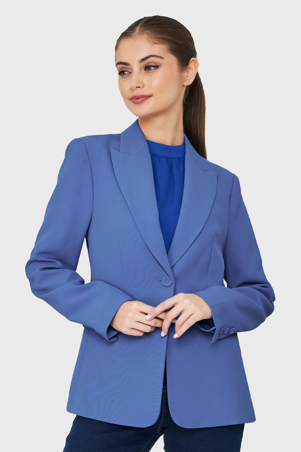 Características: Blazer bolsillos funcionales con solapas. Botón de ajuste, hombreras, tajo en la parte posterior y botones de ajuste en puños.