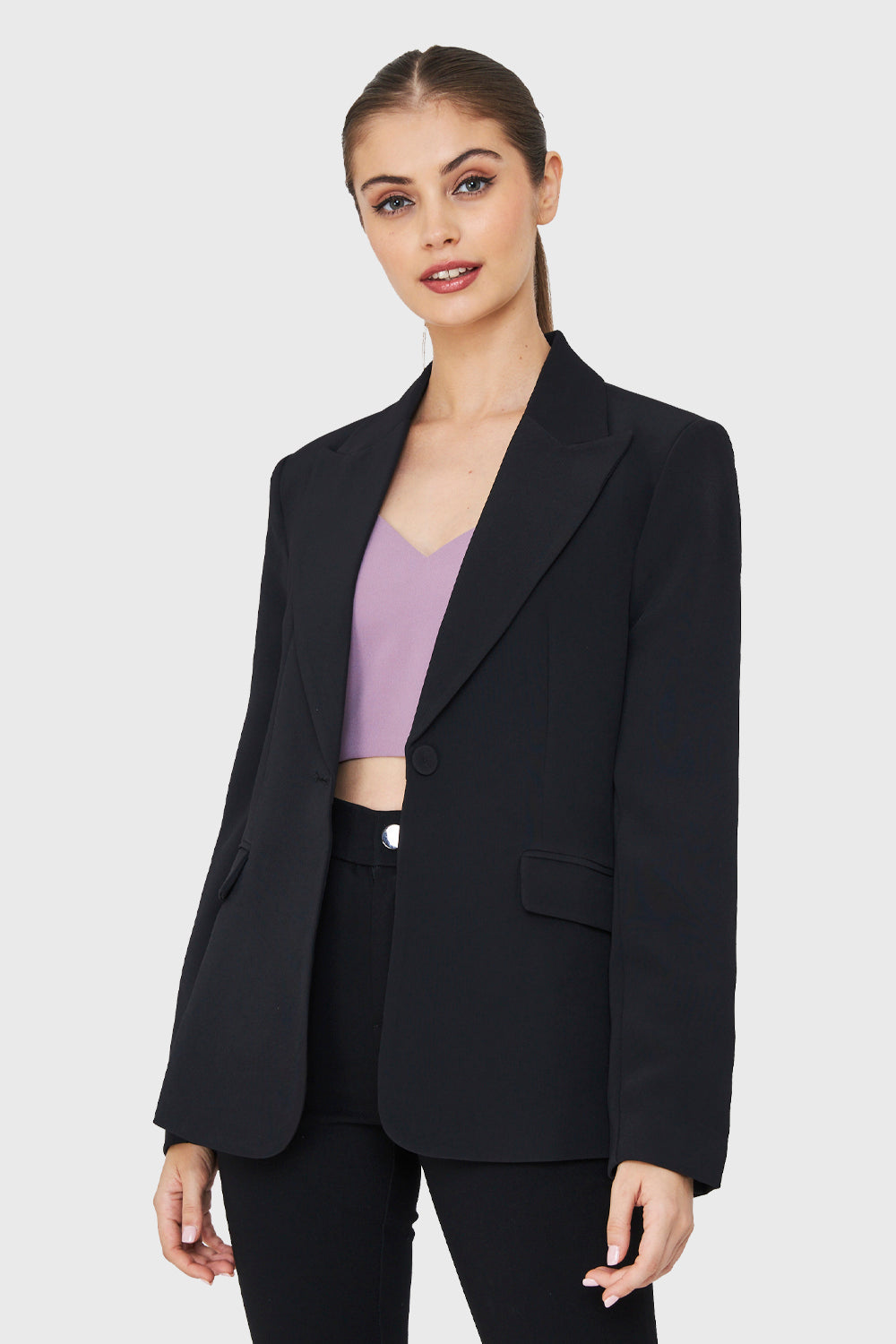 Características: Blazer bolsillos funcionales con solapas. Botón de ajuste, hombreras, tajo en la parte posterior y botones de ajuste en puños.