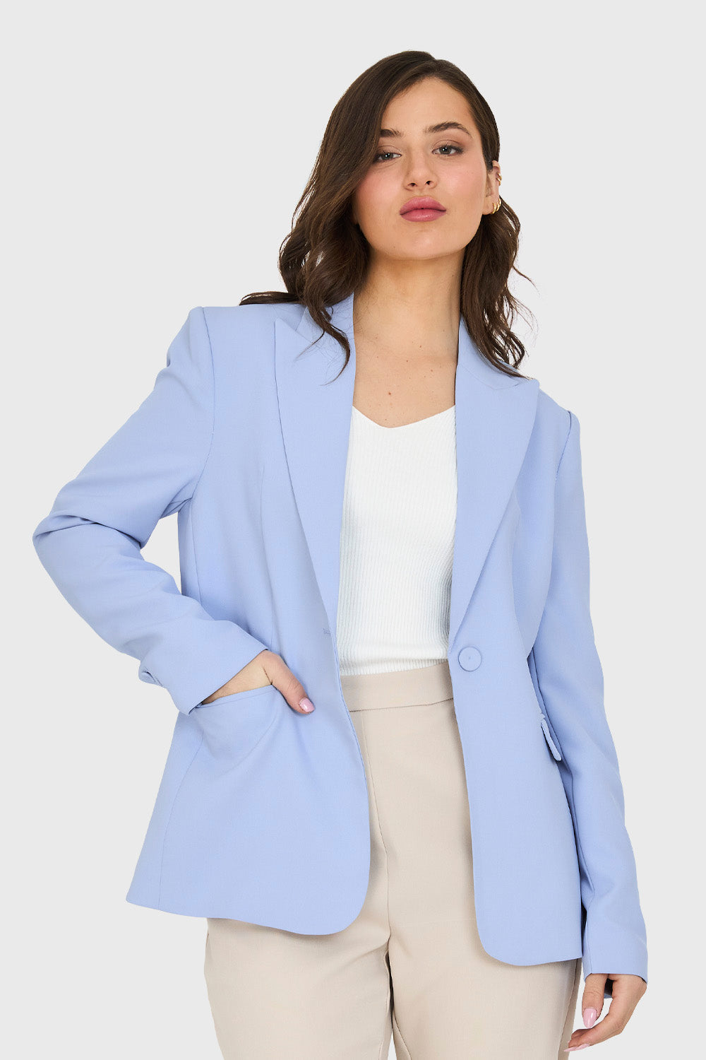 Blazer Bolsillos y Botón Celeste