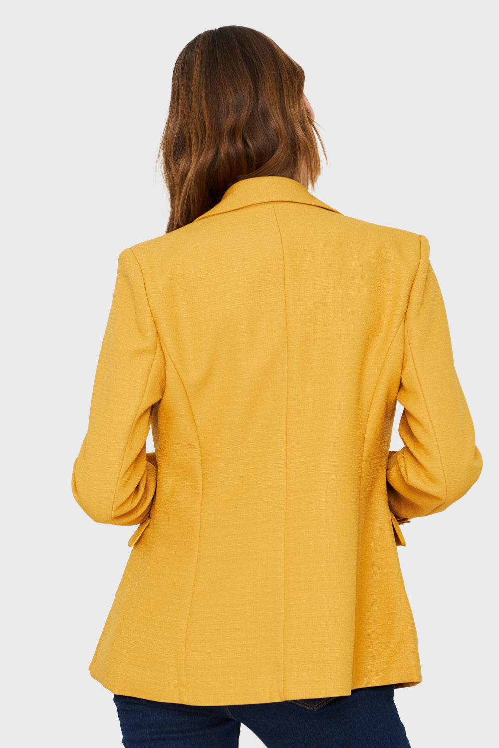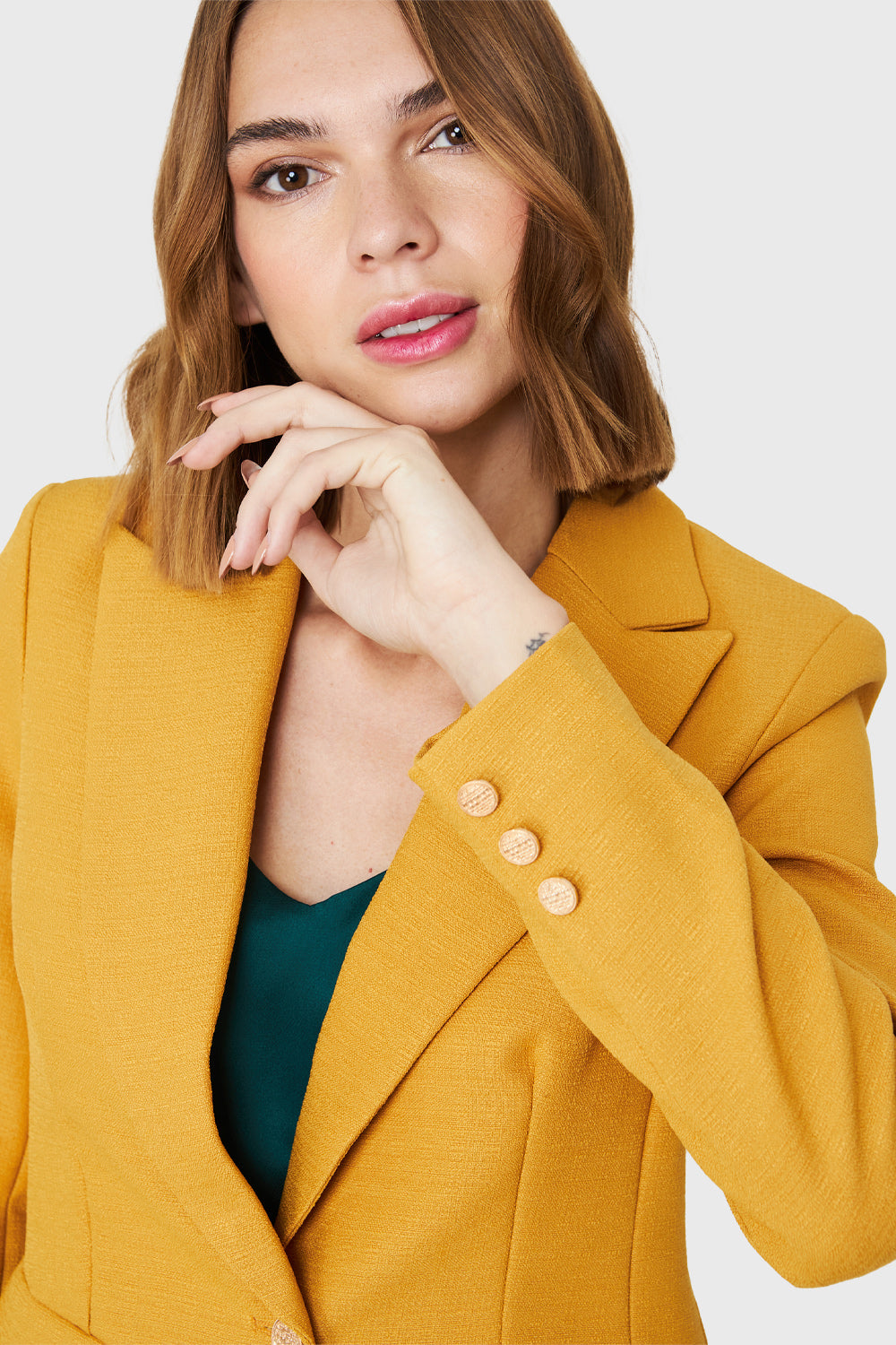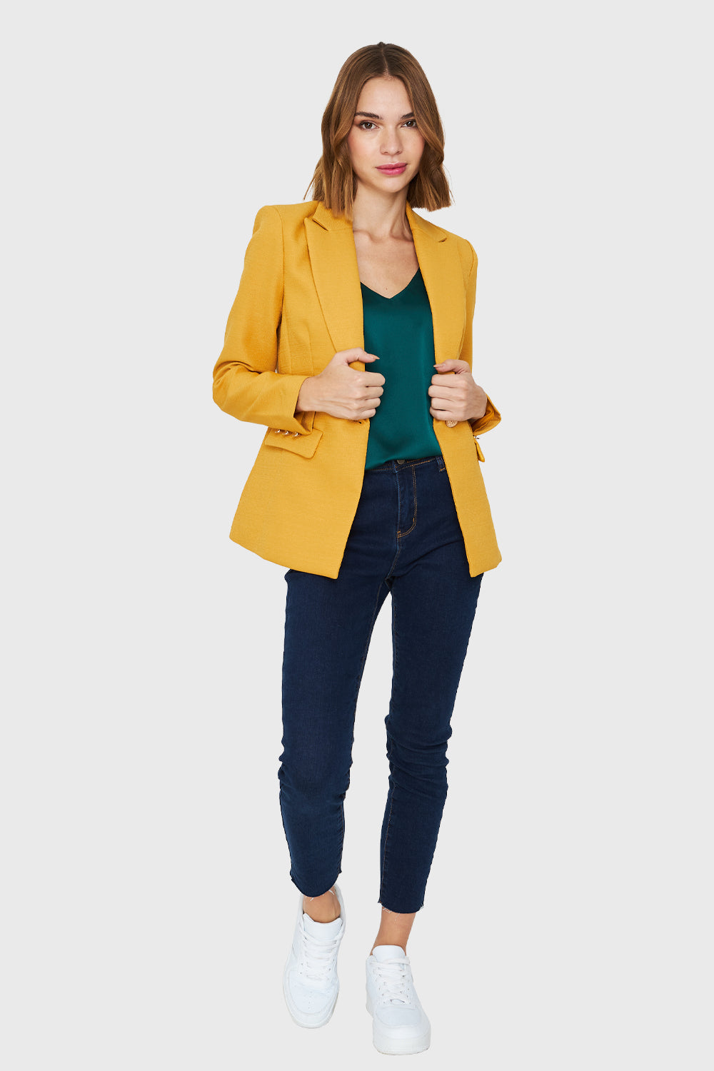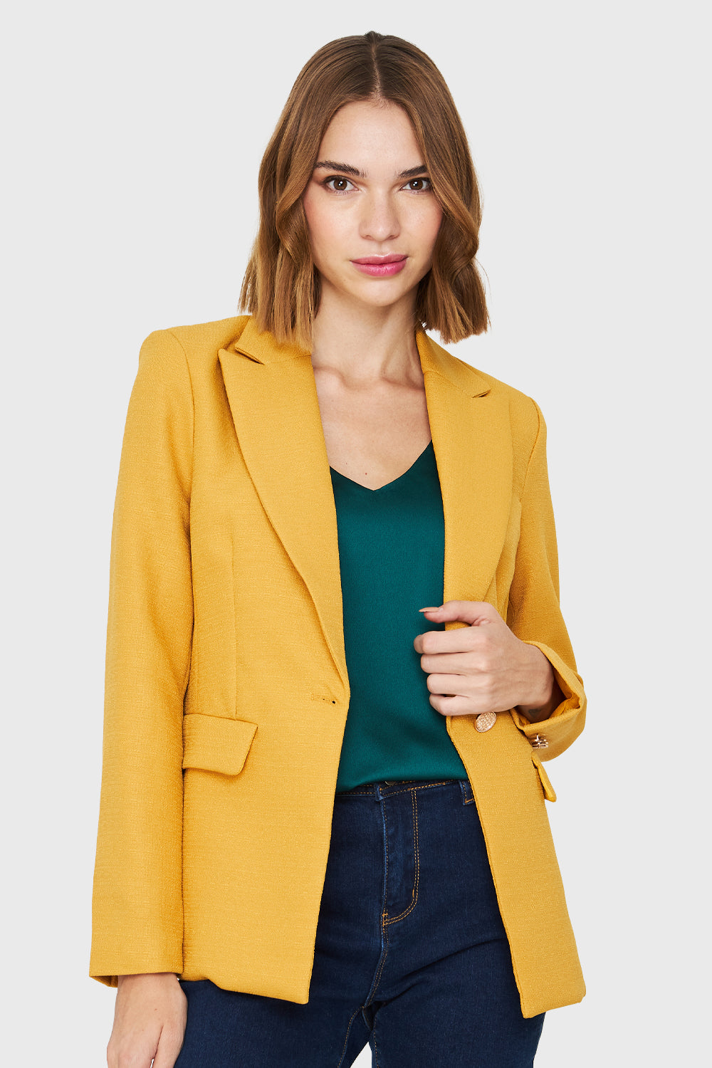 Características: Blazer básico cuello en V. Un botón de ajuste en el centro. Bolsillos funcionales. Posee forro y hombreras.