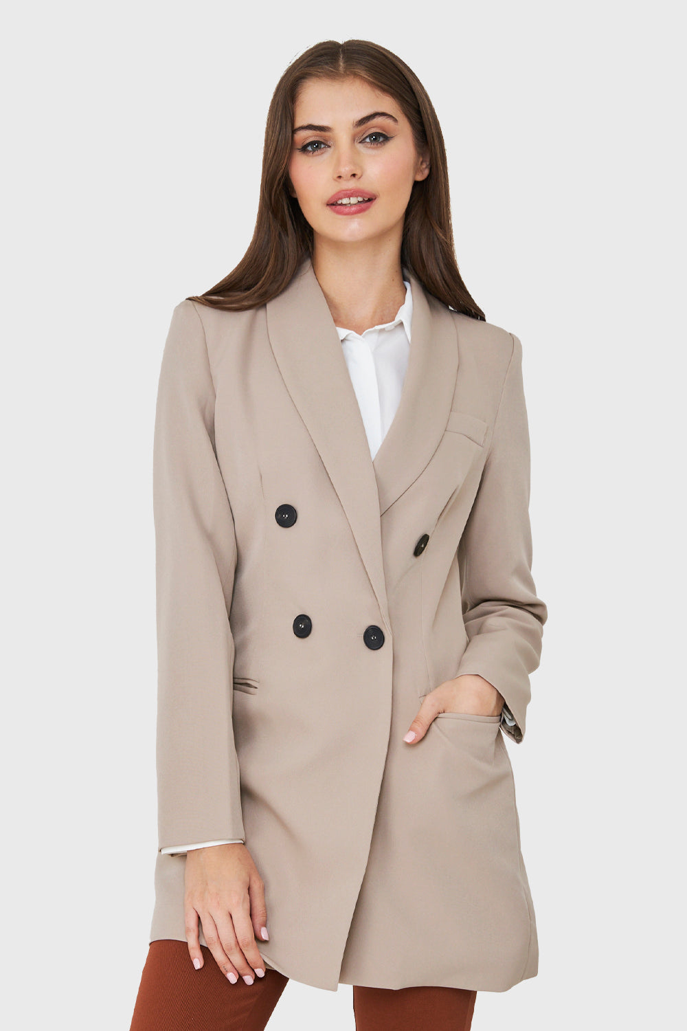 Blazer Cuatro Botones Largo Beige