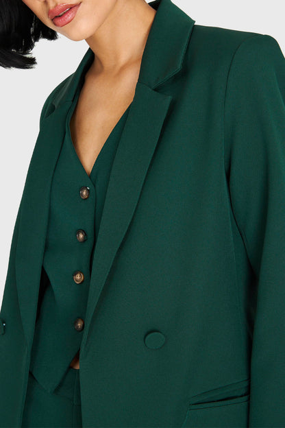 Blazer De Tope Botones Decorativos Verde Oscuro