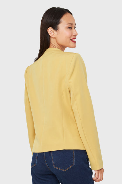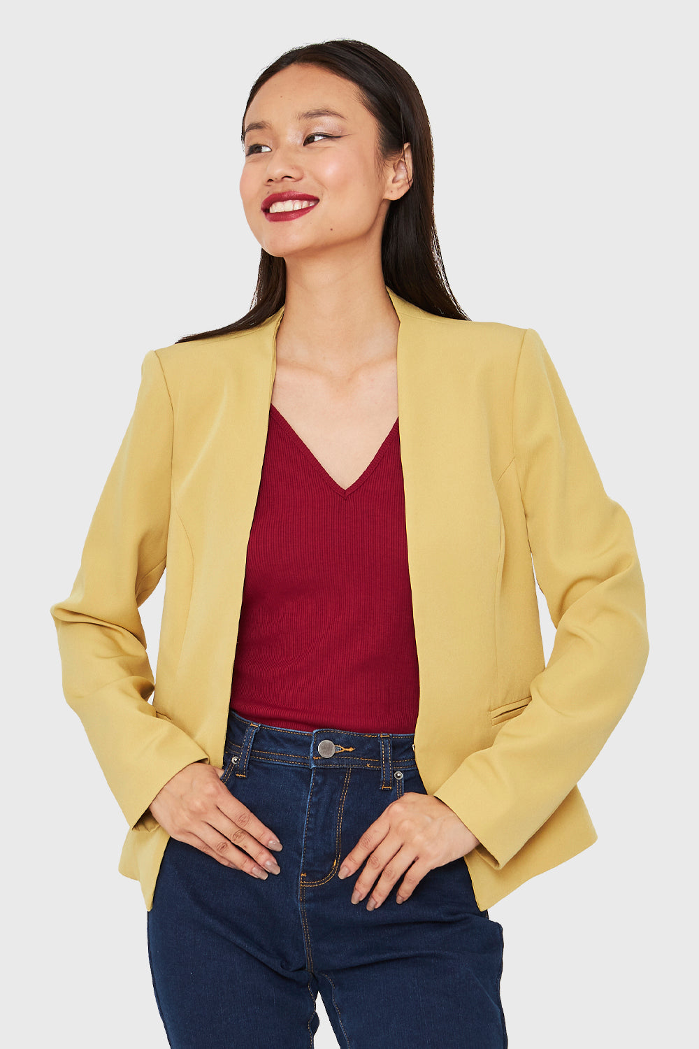 Características: Blazer corte clásico entallado con bolsillos frontales decorativos. Broche de gancho en la cintura para cerrarlo. Posee hombreras y es forrado.