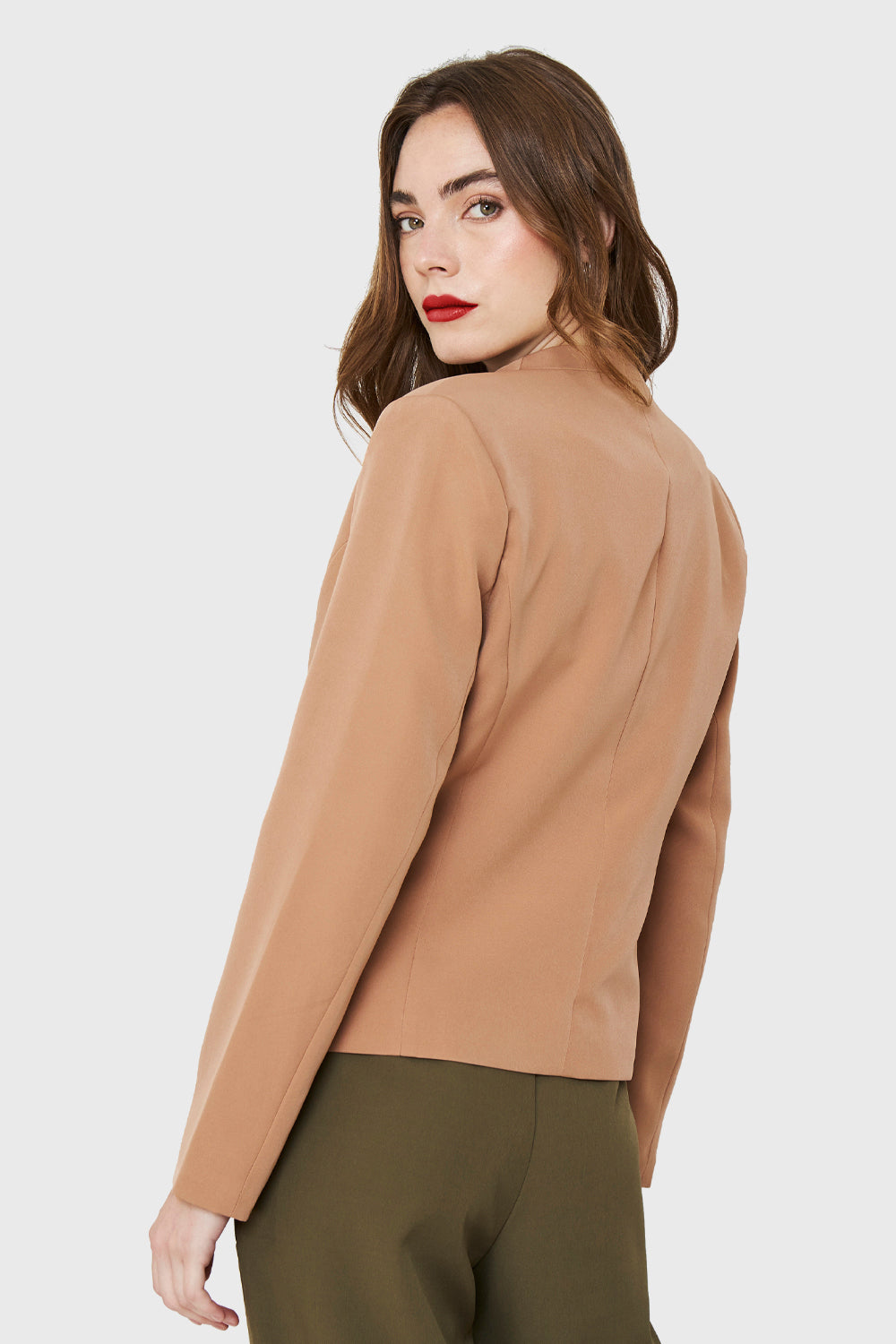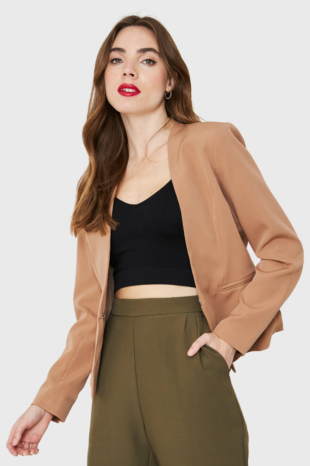 Características: Blazer corte clásico entallado con bolsillos frontales decorativos. Broche de gancho en la cintura para cerrarlo. Posee hombreras y es forrado.