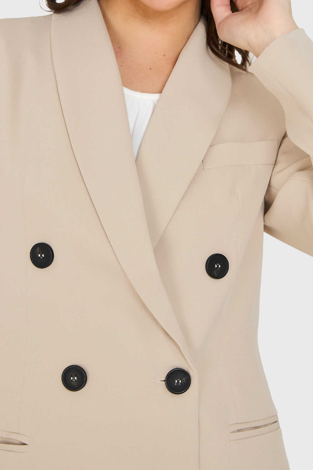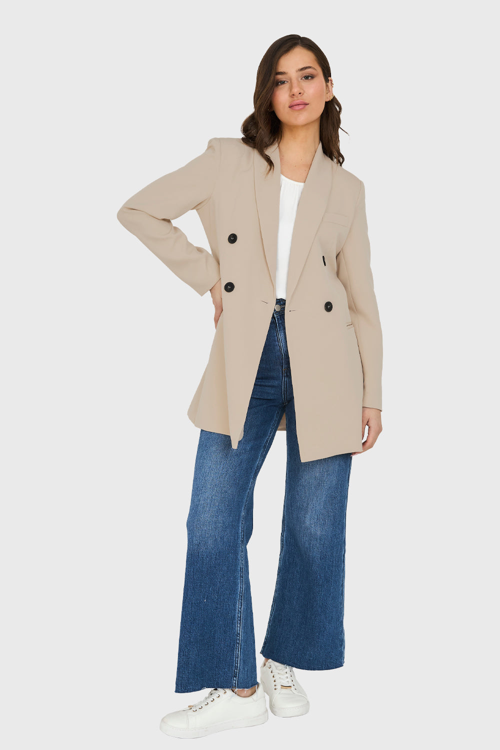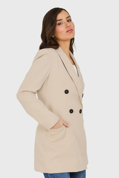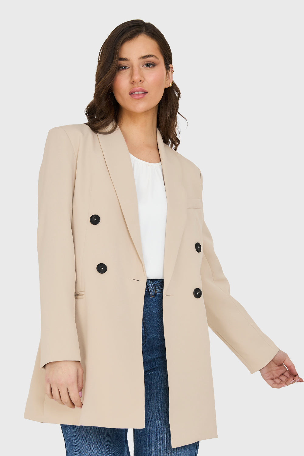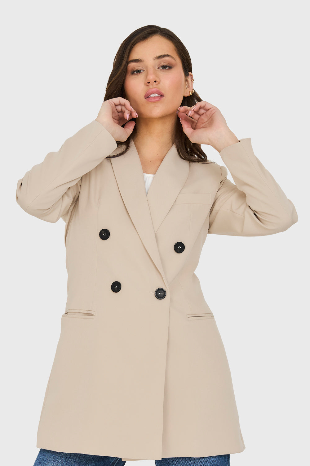 Características: Blazer largo cuatro botones. Detalle de bolsillo en busto y bolsillos funcionales laterales. Solapa larga. Posee pinzas frontales y forro. Es ceñido.