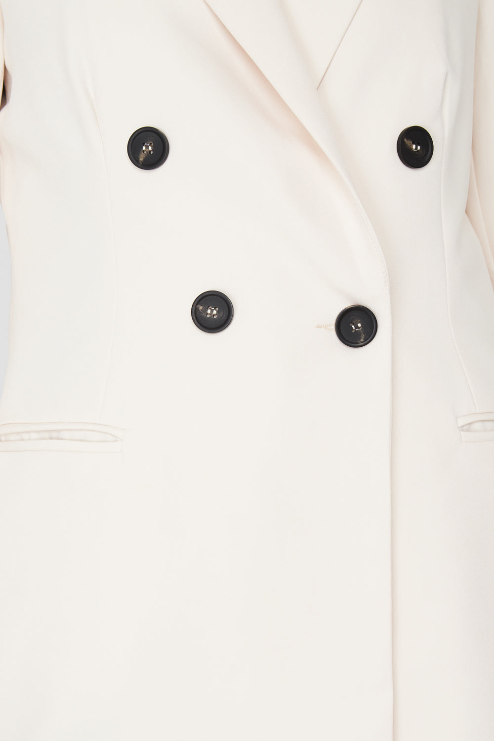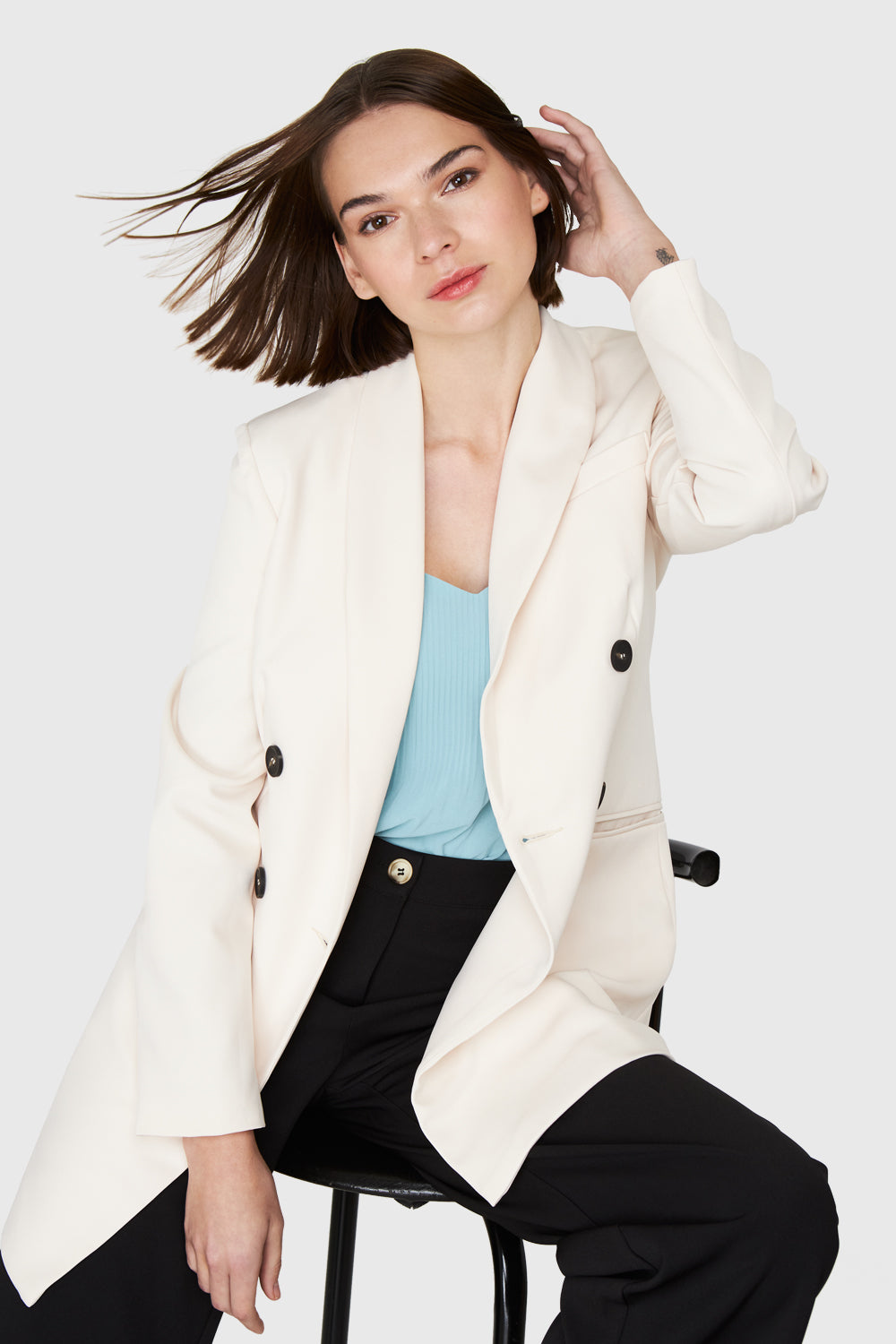 Características: Blazer largo cuatro botones. Detalle de bolsillo en busto y bolsillos funcionales laterales. Solapa larga. Posee pinzas frontales y forro. Es ceñido.