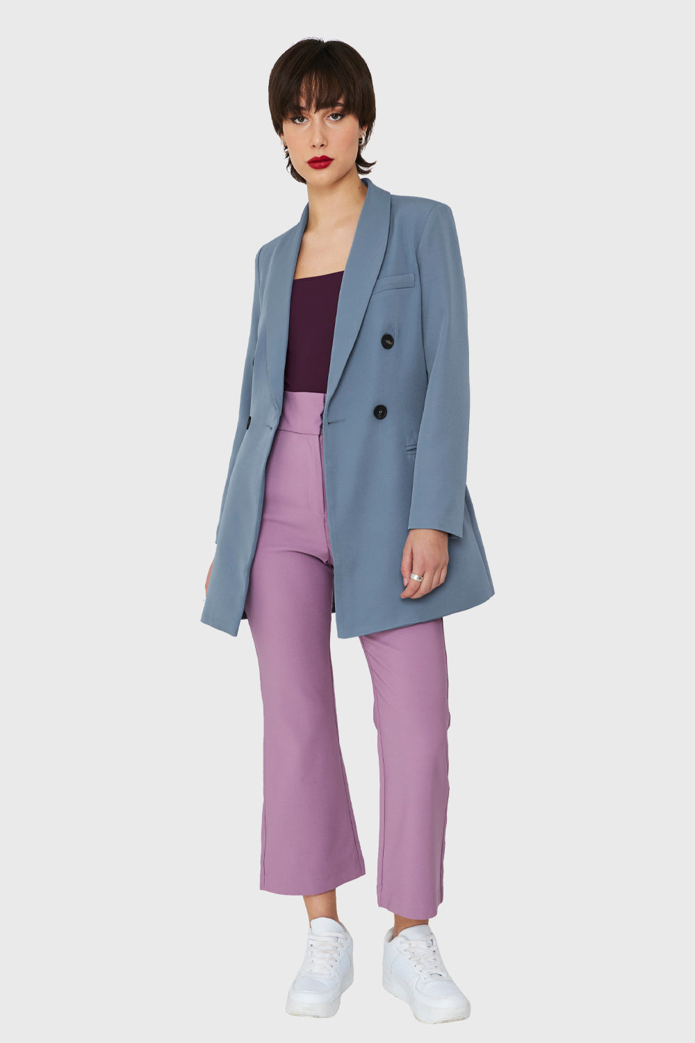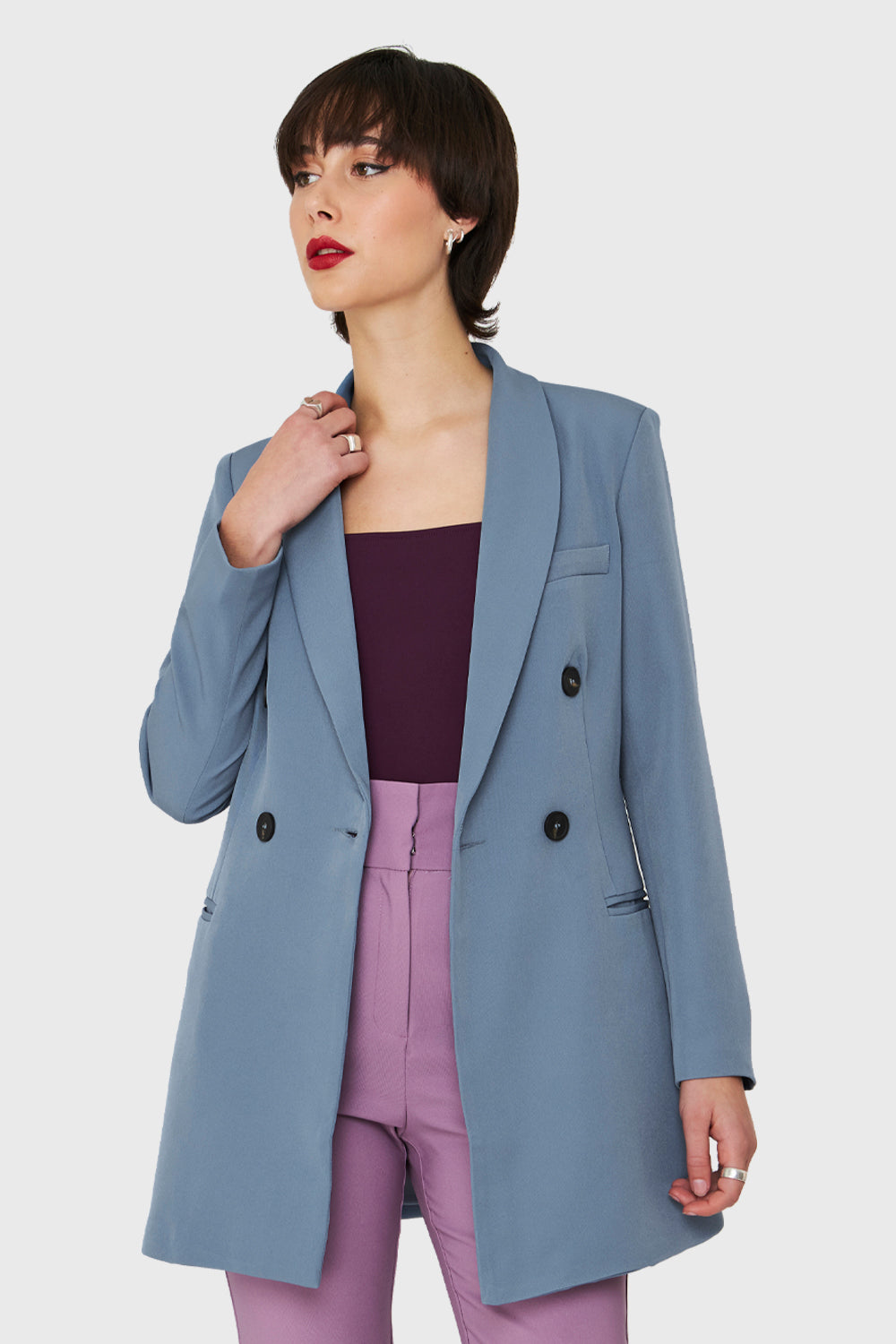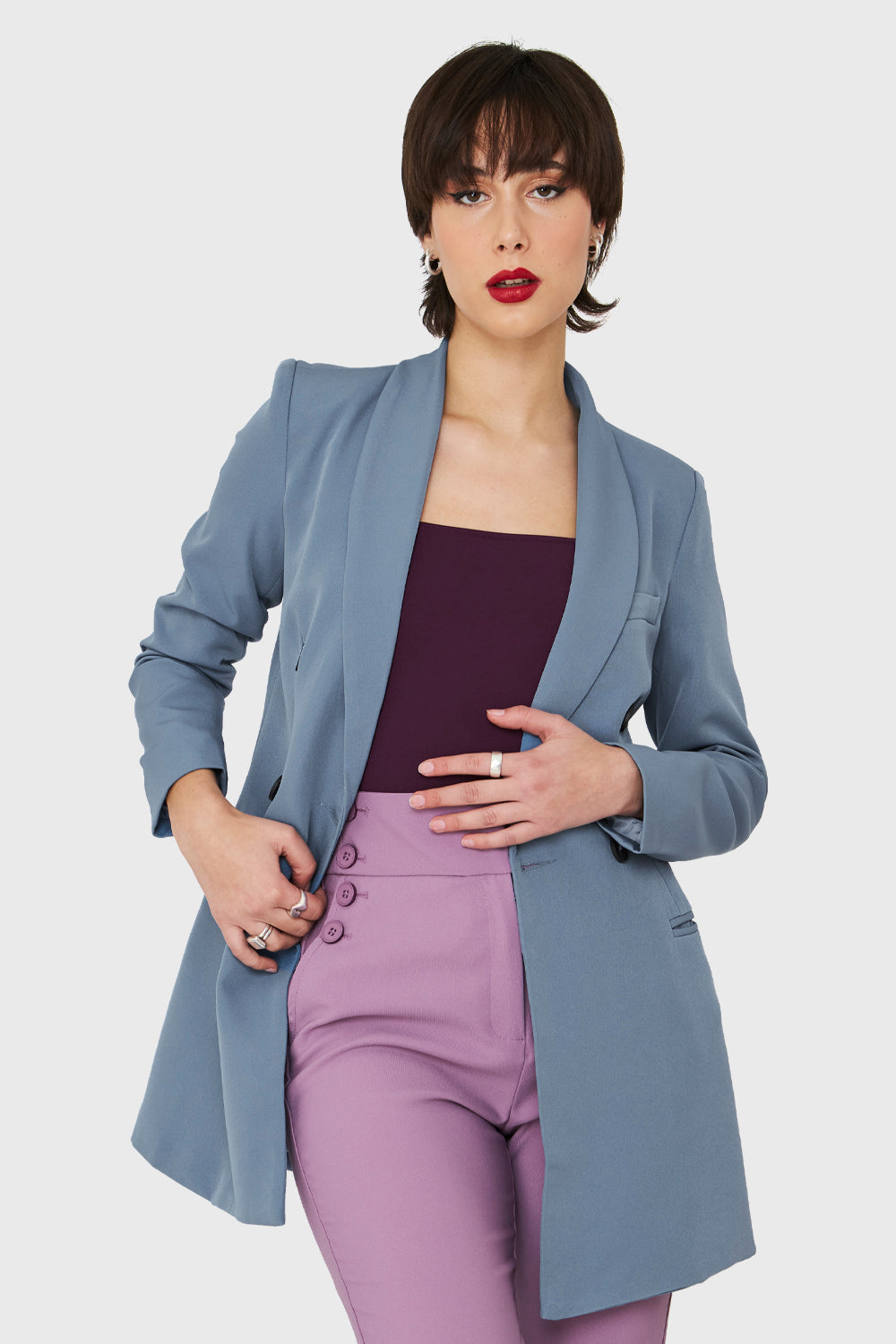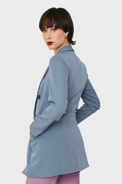 Características: Blazer largo cuatro botones. Detalle de bolsillo en busto y bolsillos funcionales laterales. Solapa larga. Posee pinzas frontales y forro. Es ceñido.