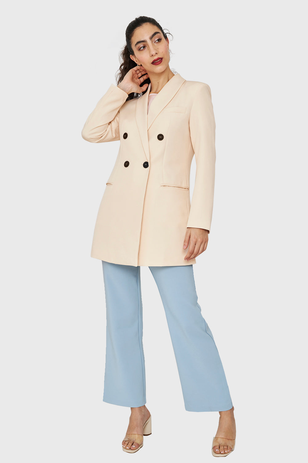 Características: Blazer largo cuatro botones. Detalle de bolsillo en busto y bolsillos funcionales laterales. Solapa larga. Posee pinzas frontales y forro. Es ceñido.
