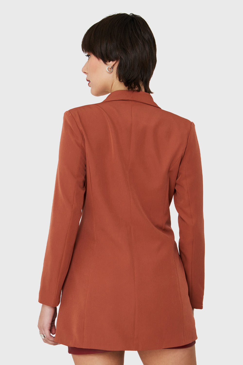Características: Blazer largo cuatro botones. Detalle de bolsillo en busto y bolsillos funcionales laterales. Solapa larga. Posee pinzas frontales y forro. Es ceñido.