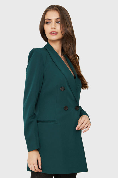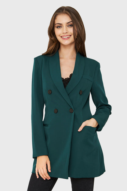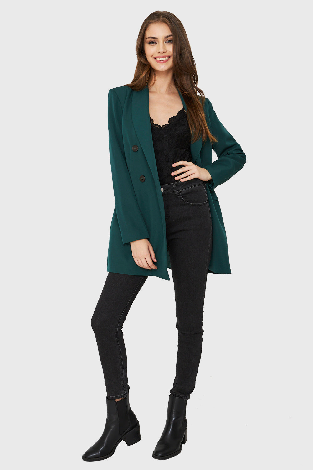 Características: Blazer largo cuatro botones. Detalle de bolsillo en busto y bolsillos funcionales laterales. Solapa larga. Posee pinzas frontales y forro. Es ceñido.