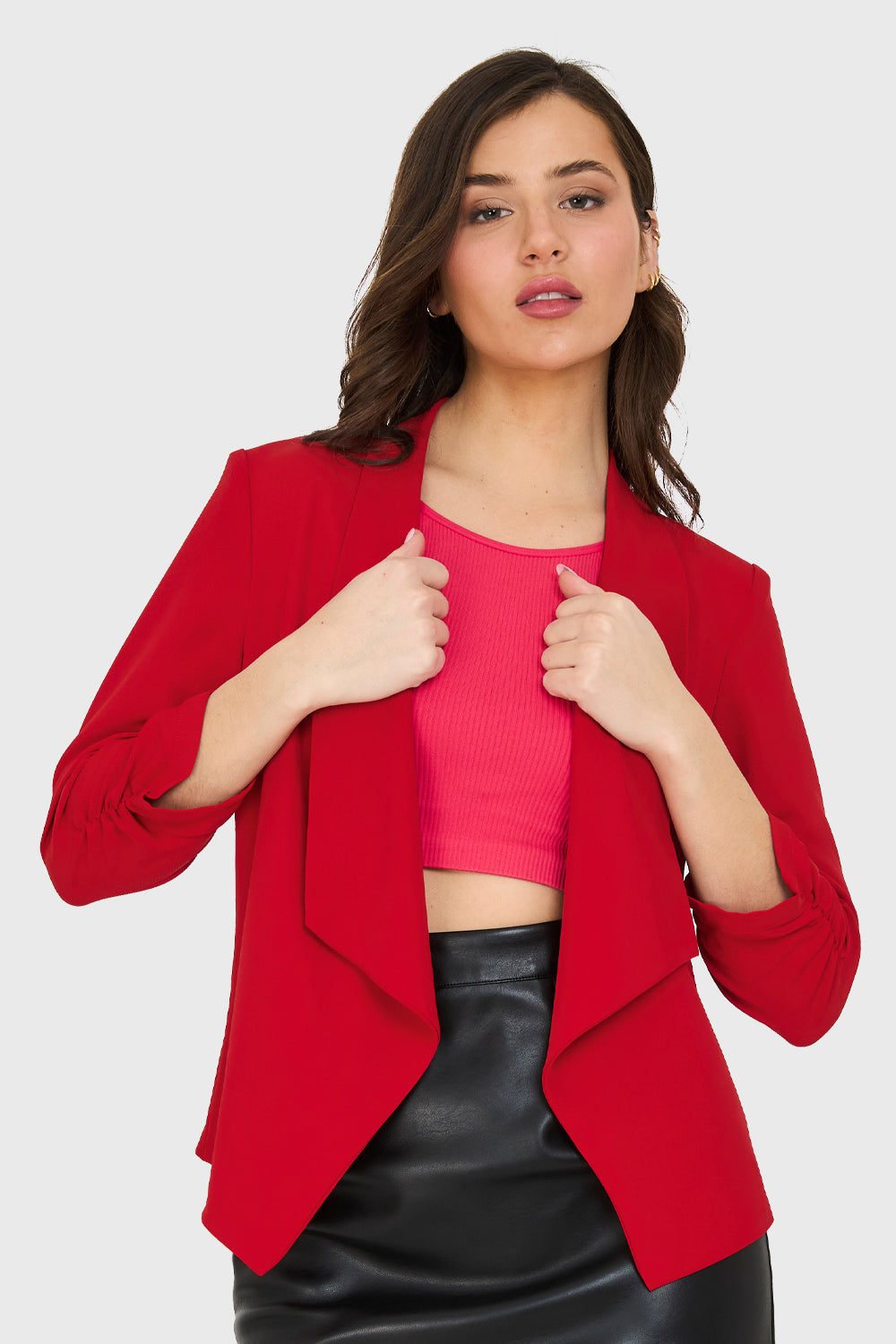 Blazer Manga Detalle Drapeado Rojo