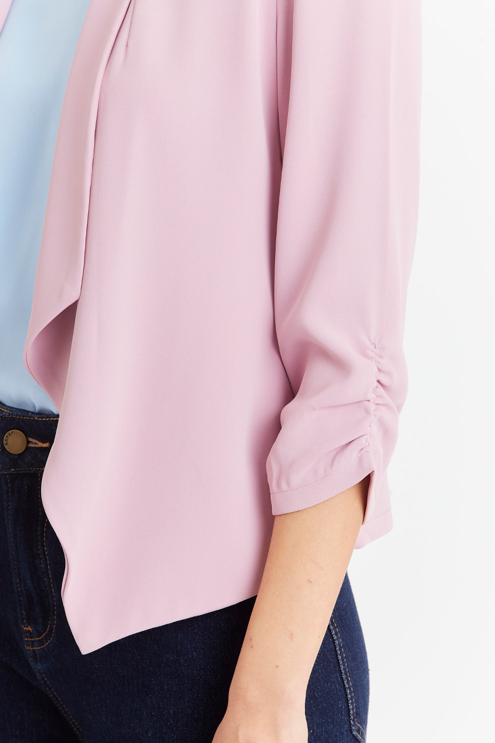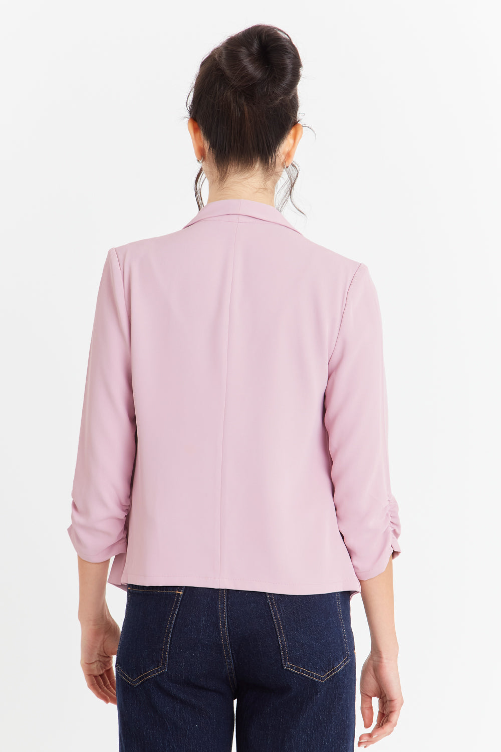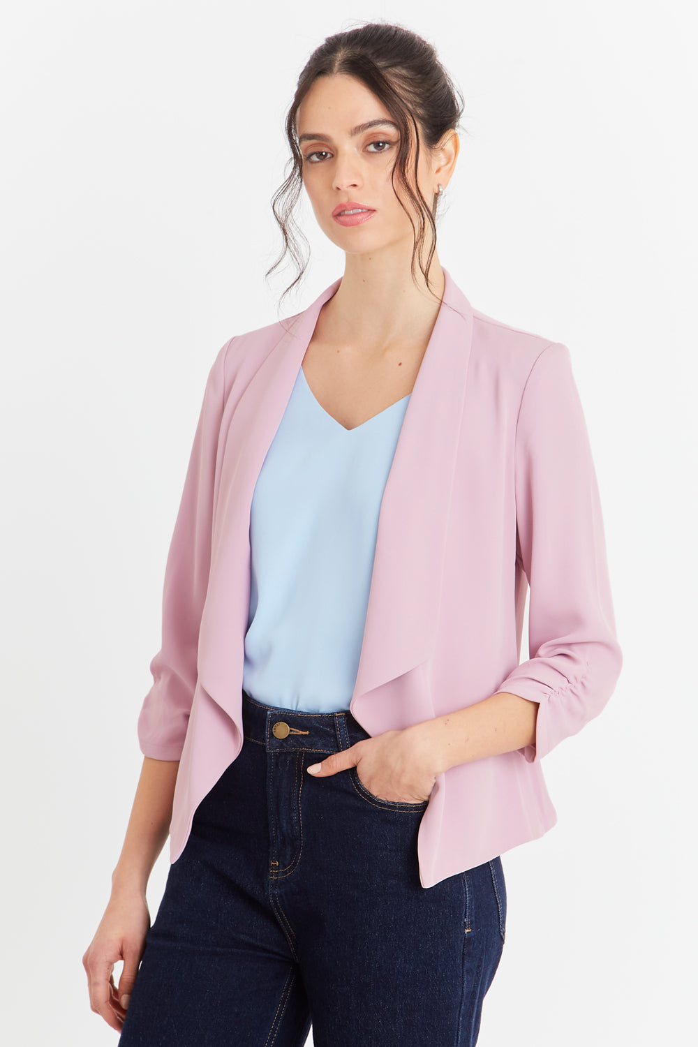 Características: Blazer solapa manga 3/4 con detalle drapeado. De tope y con hombreras. No posee forro.