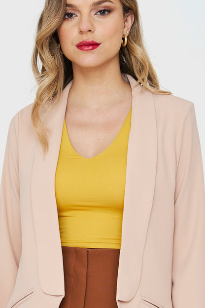Características: Blazer con solapa larga y bolsillos decorativos. Posee hombreras.