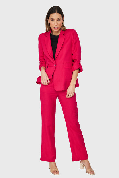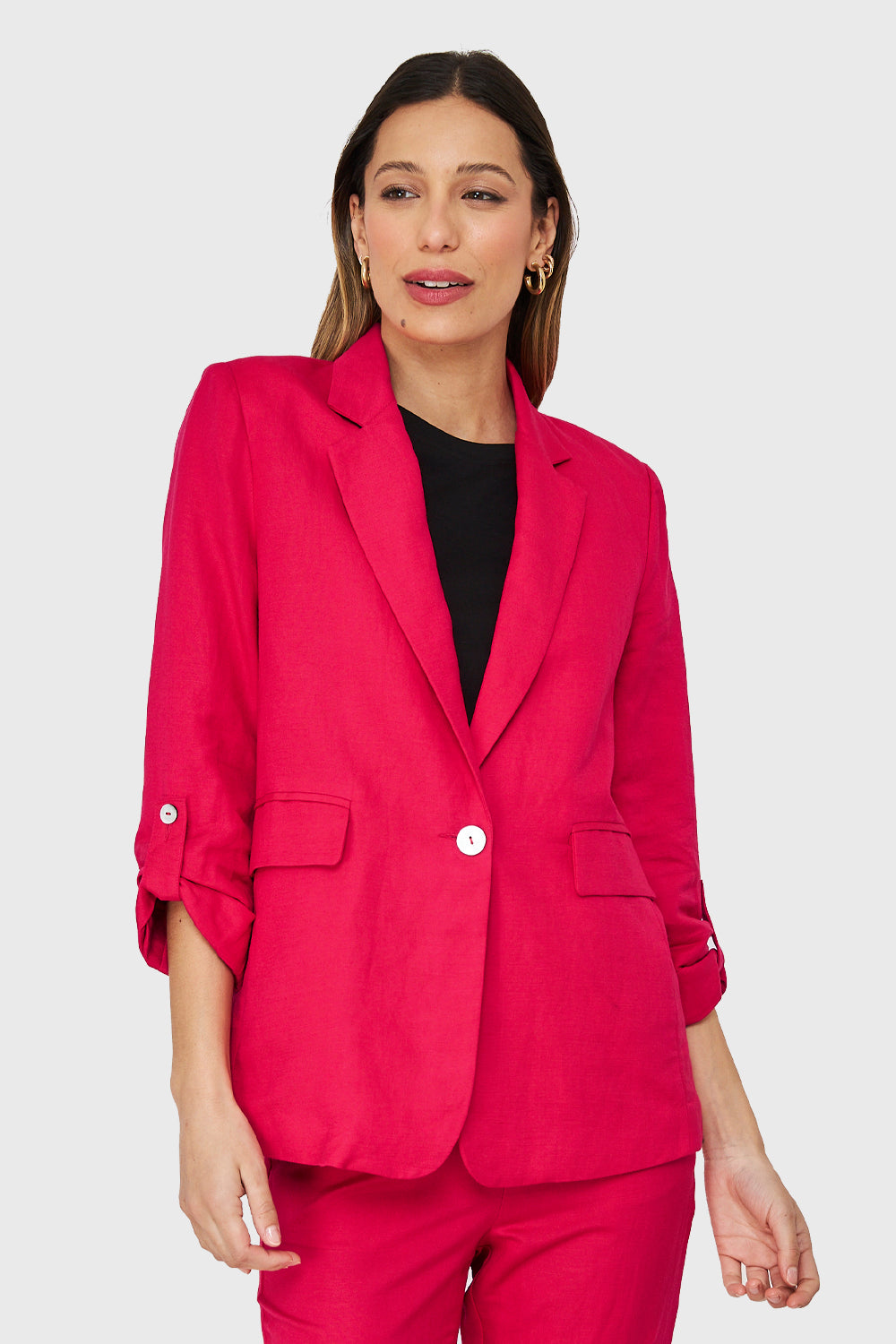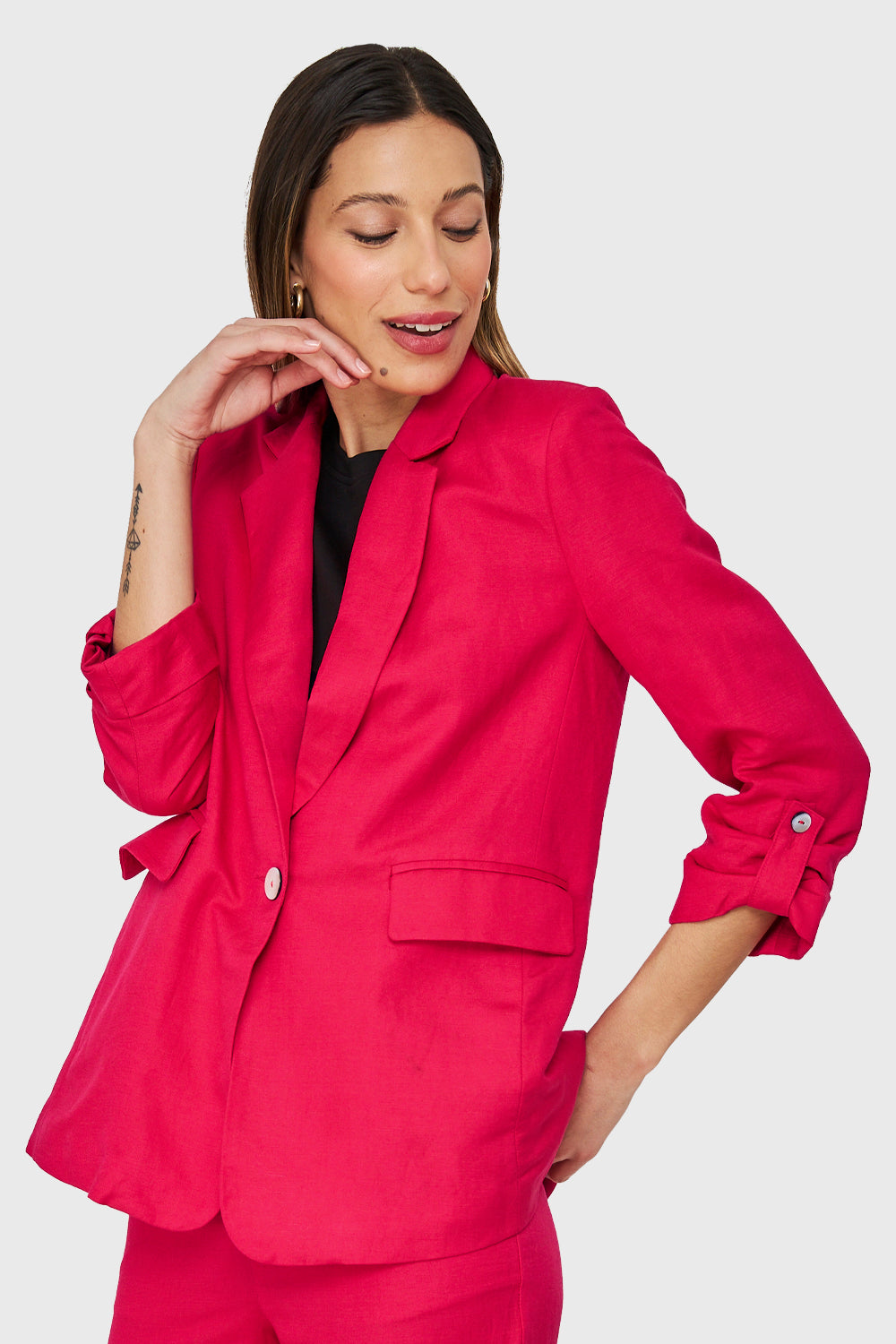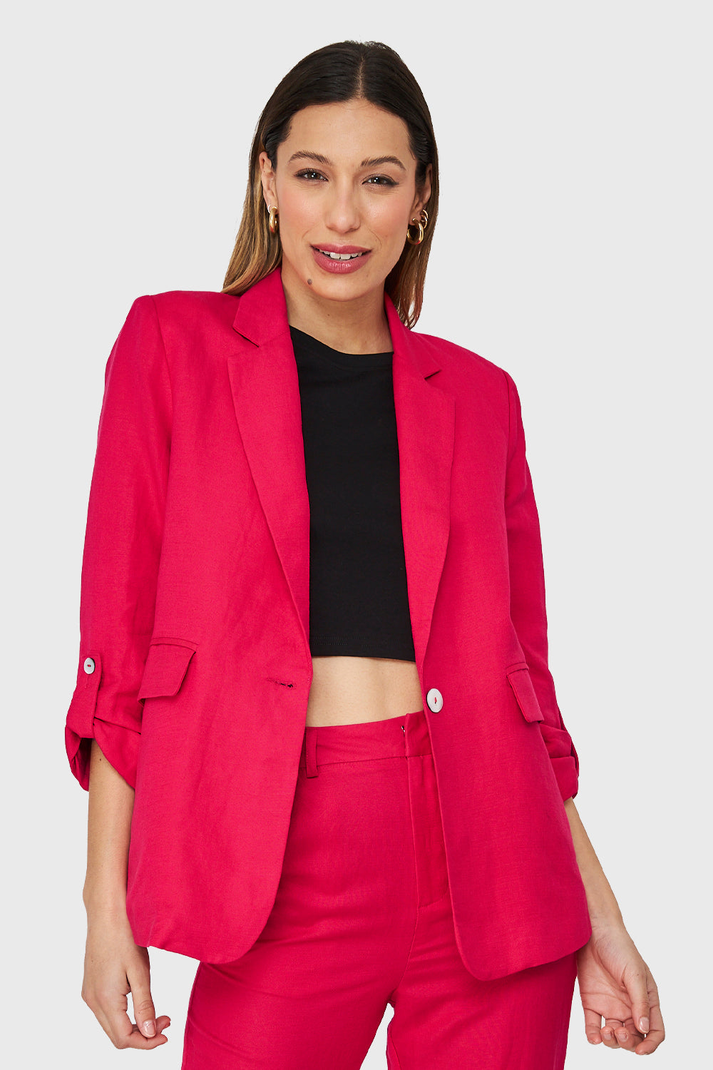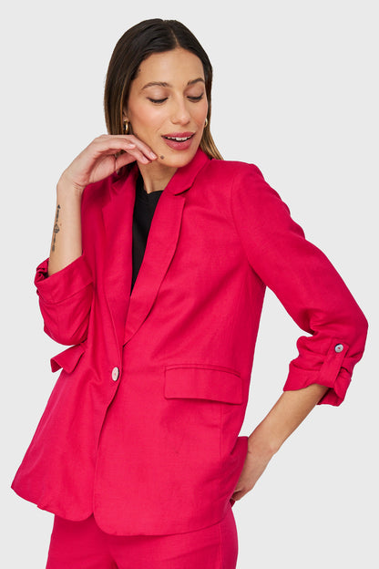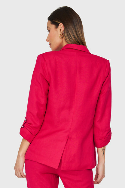Blazer Tipo Lino Manga 3/4 Ajustable Fucsia