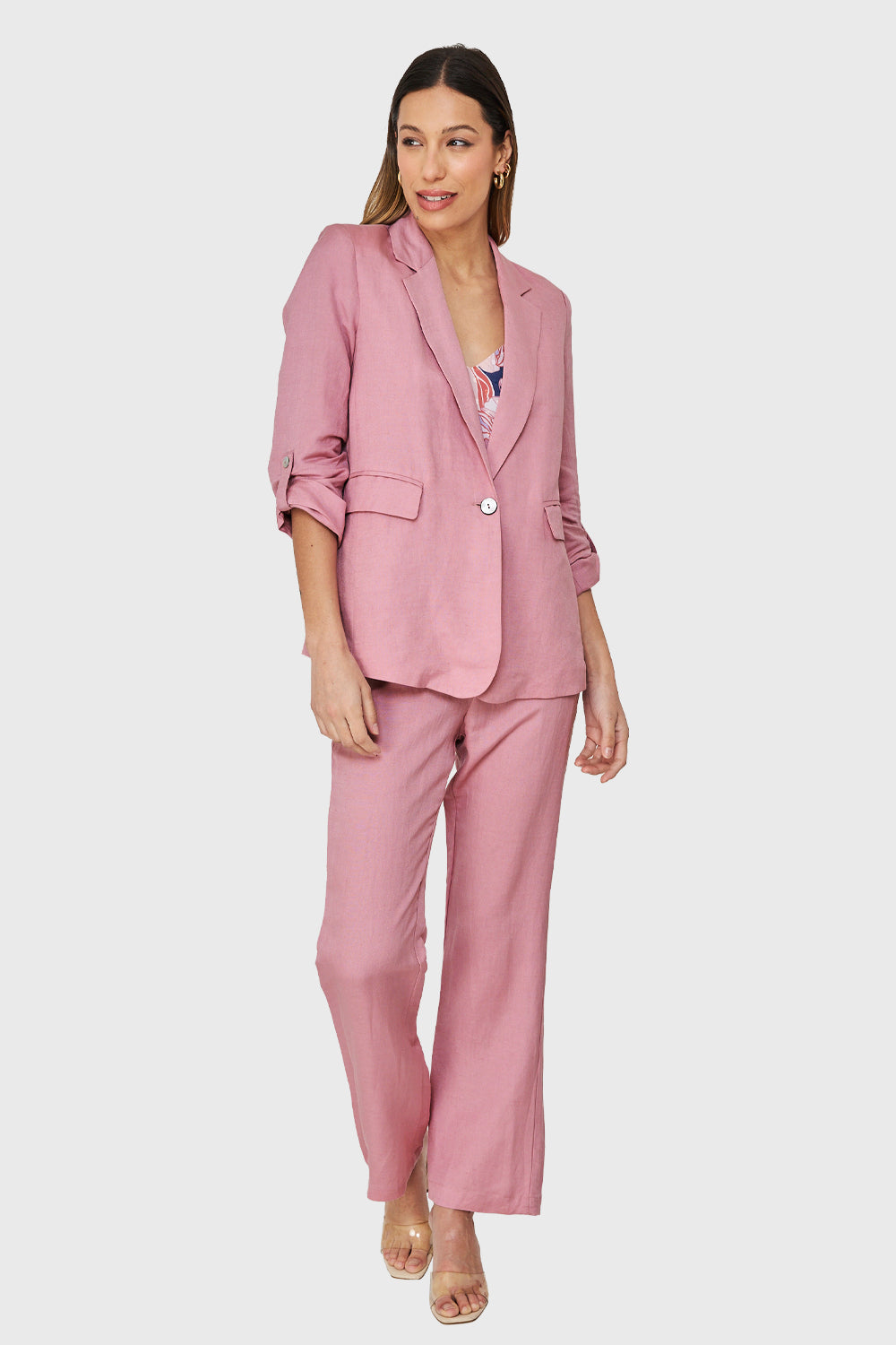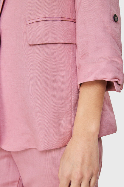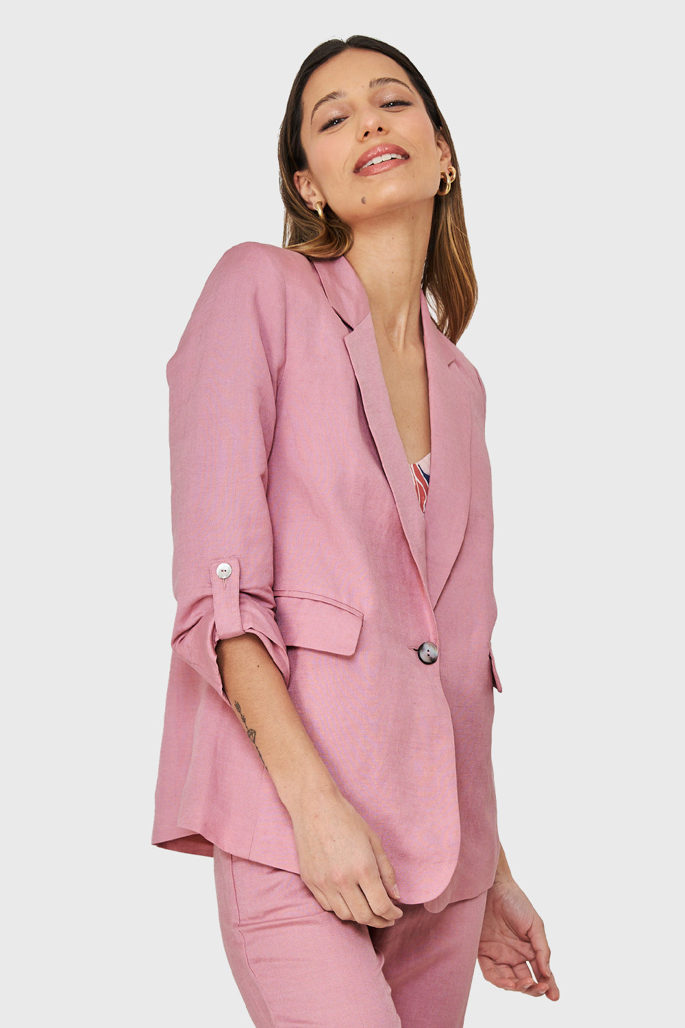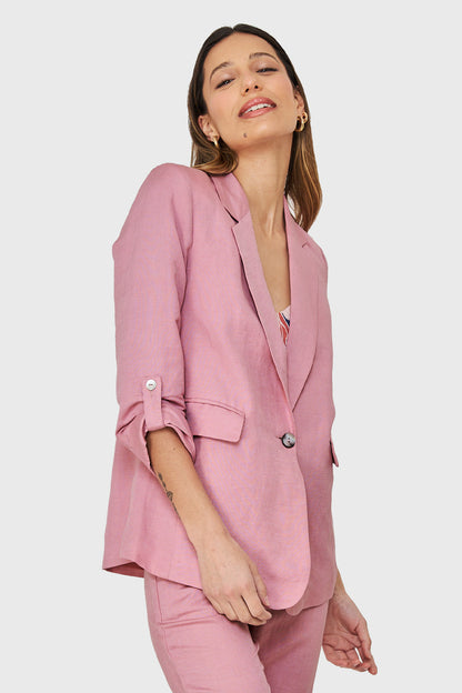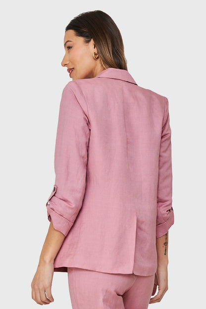 Blazer Tipo Lino Manga 3/4 Ajustable Rosado