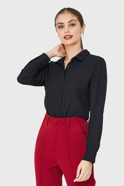 Blusa Botonera Invisible Básica Negro