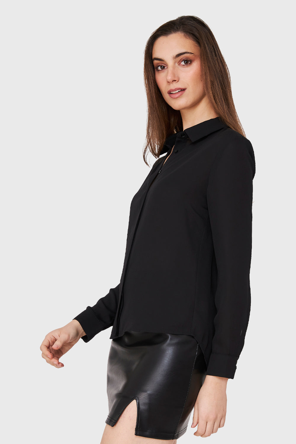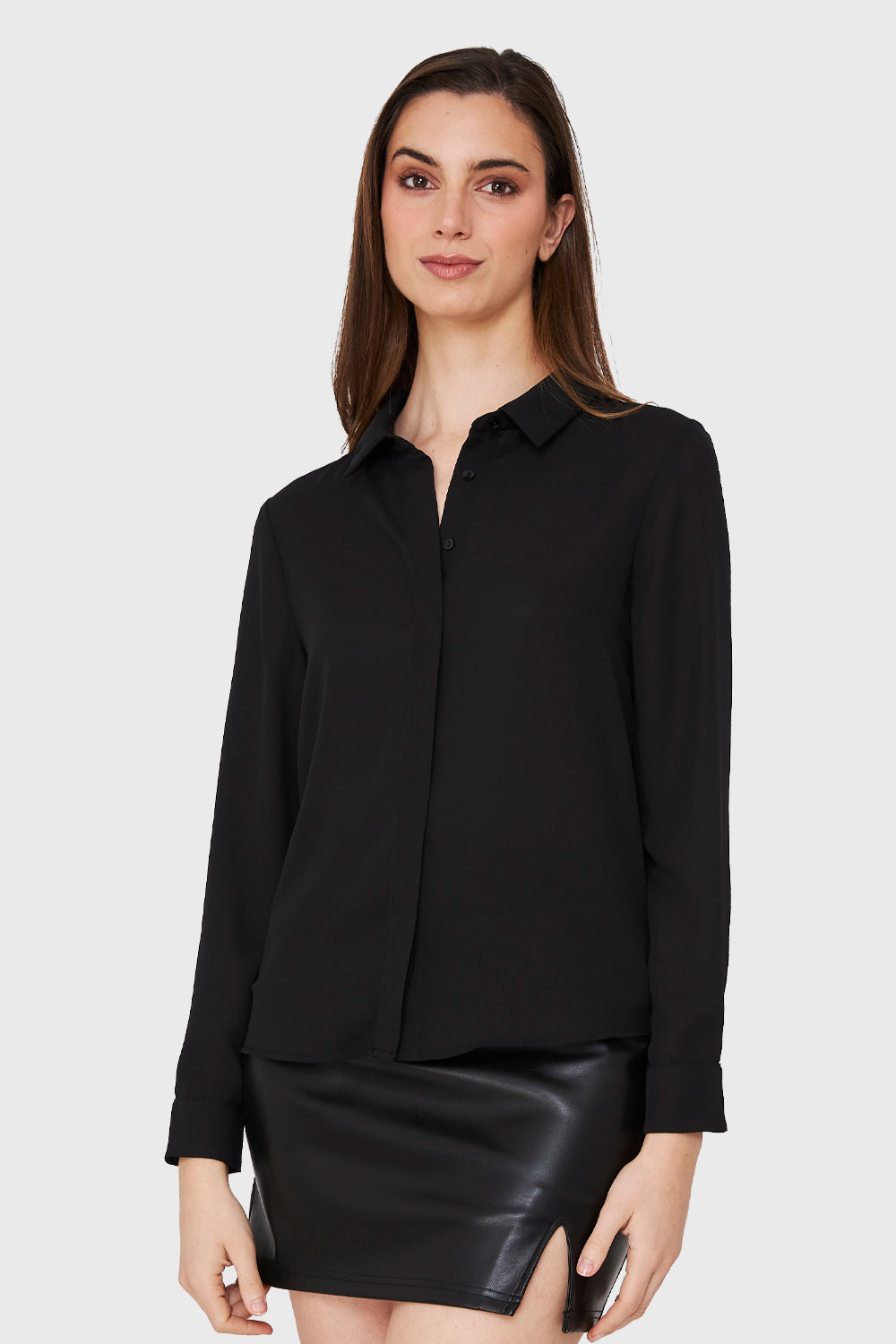 Características: Blusa básica con botonera invisible. Botones de ajuste en puños.