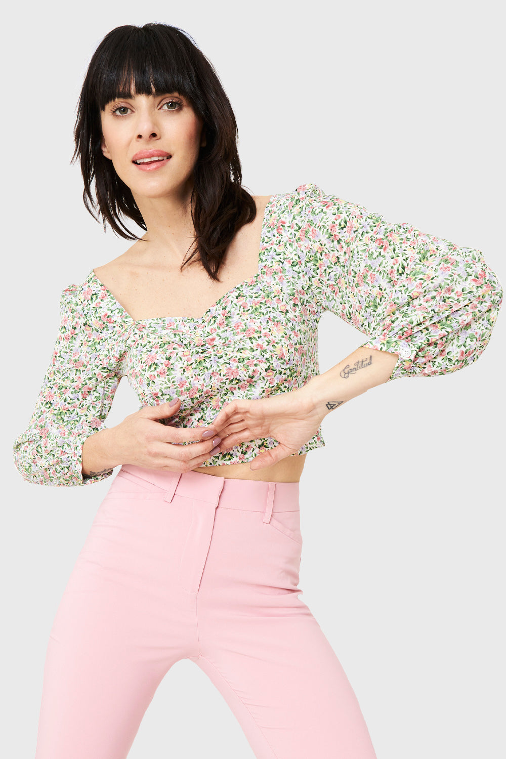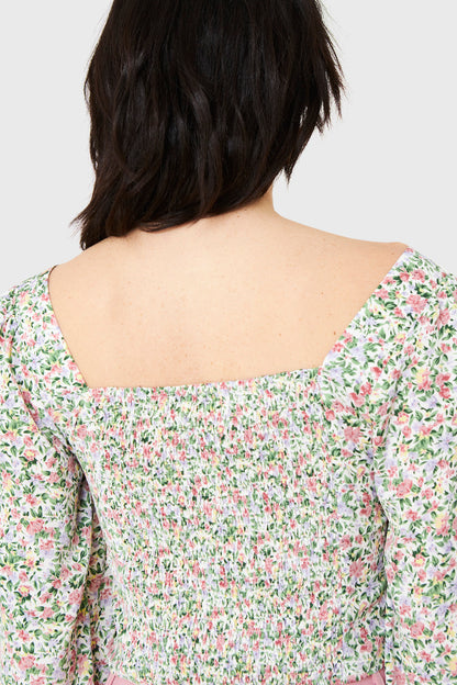 Blusa Crop Floral Blanco