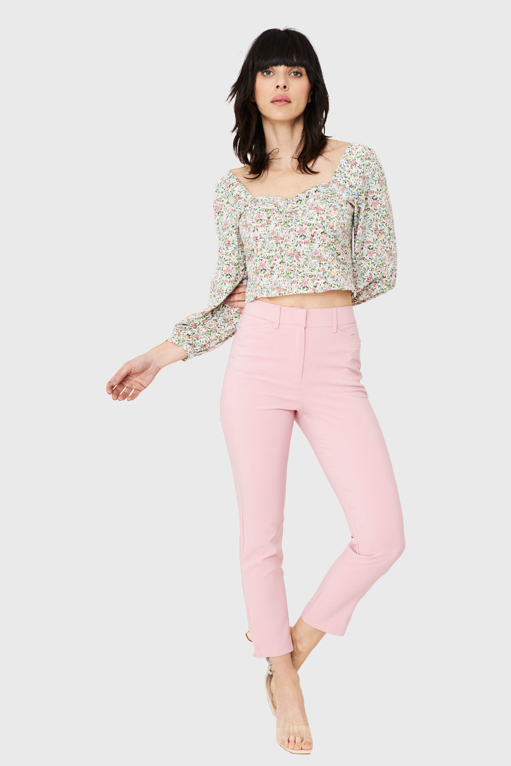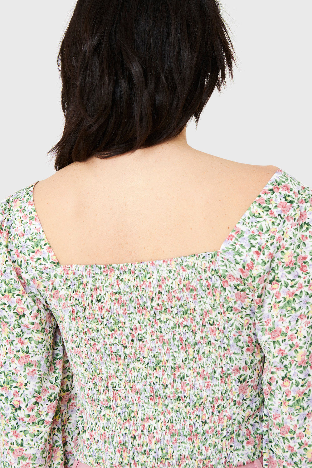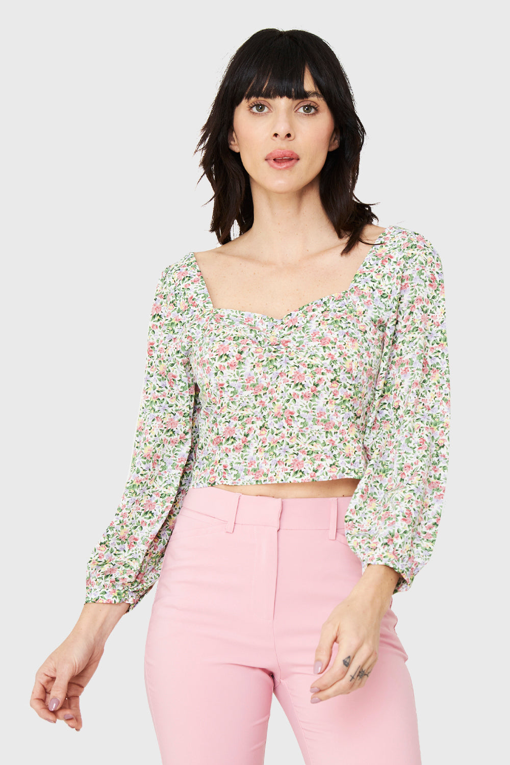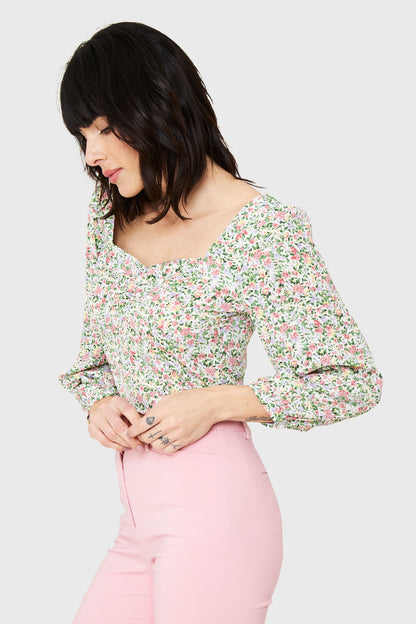 Características: Blusa escote corazón estampado floral manga larga. Espalda elasticada.