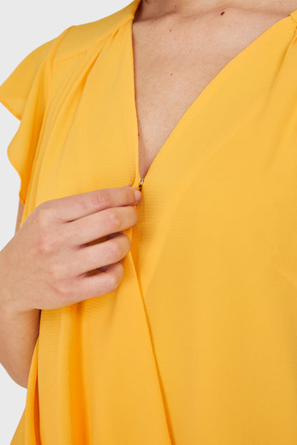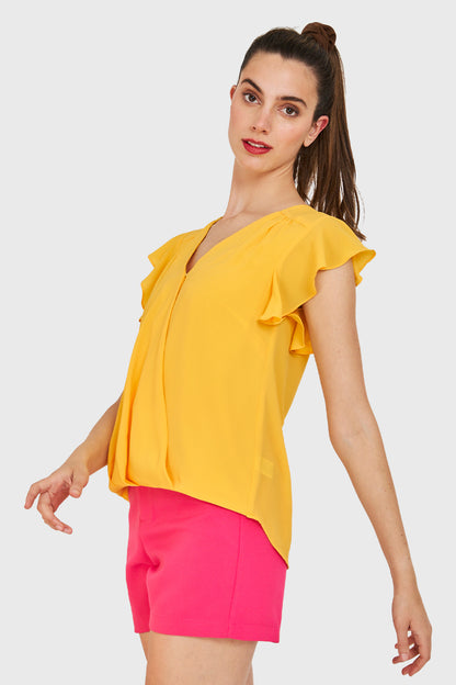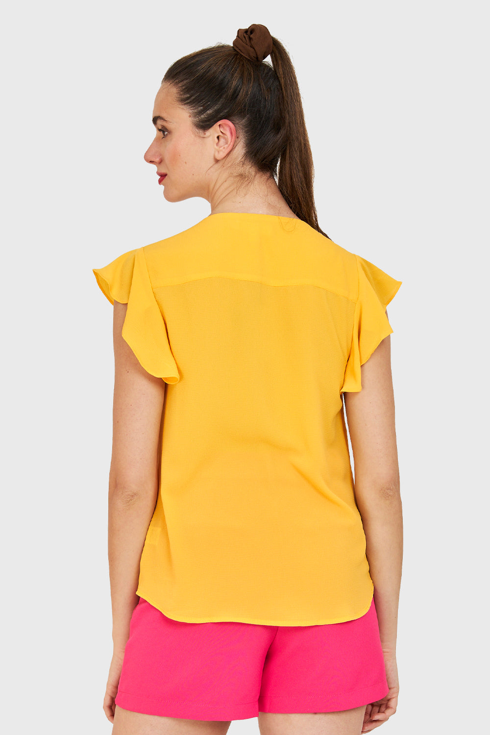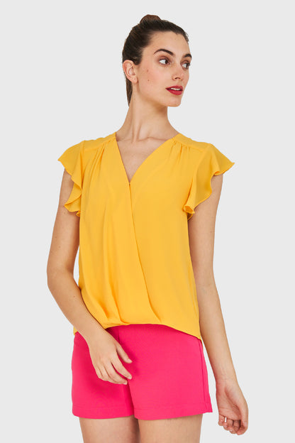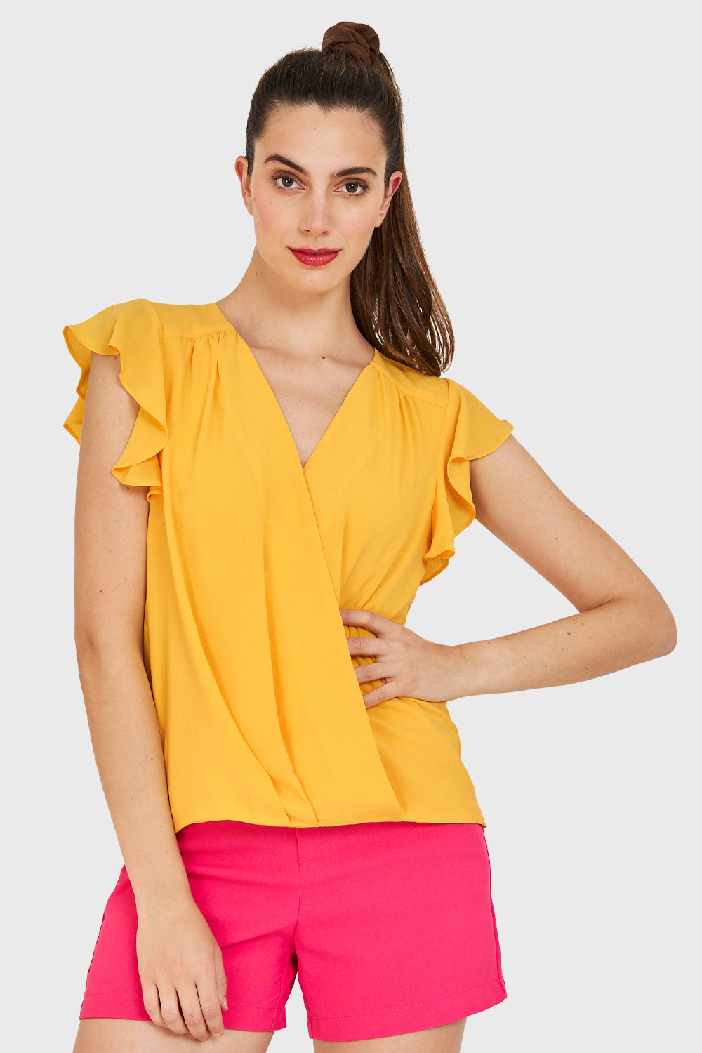 Características: Blusa escote cruzado con broche en busto.Posee forro frontal y manga con vuelos.