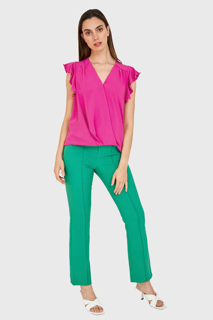 Características: Blusa escote cruzado con broche en busto.Posee forro frontal y manga con vuelos.