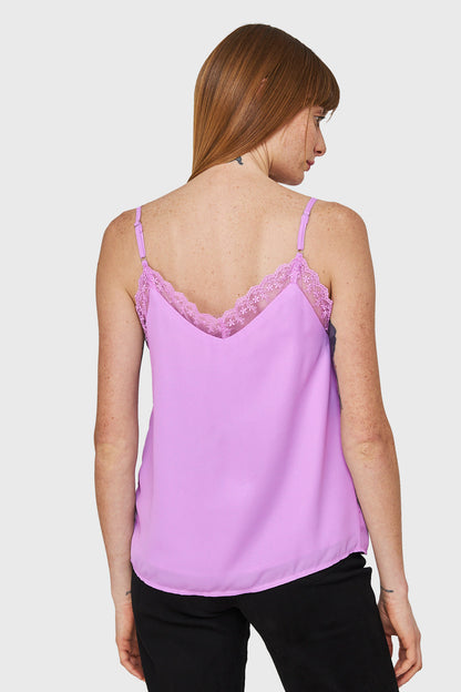 Blusa Escote V Encaje Lila
