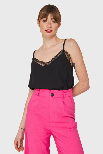 Blusa Escote V Encaje Negro