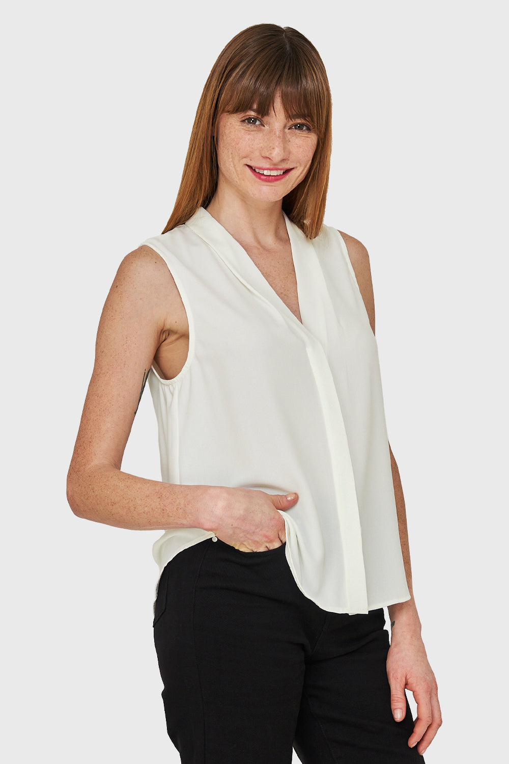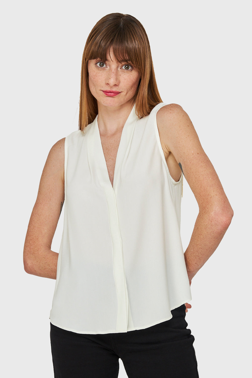 Blusa Escote V Sin Mangas Blanco