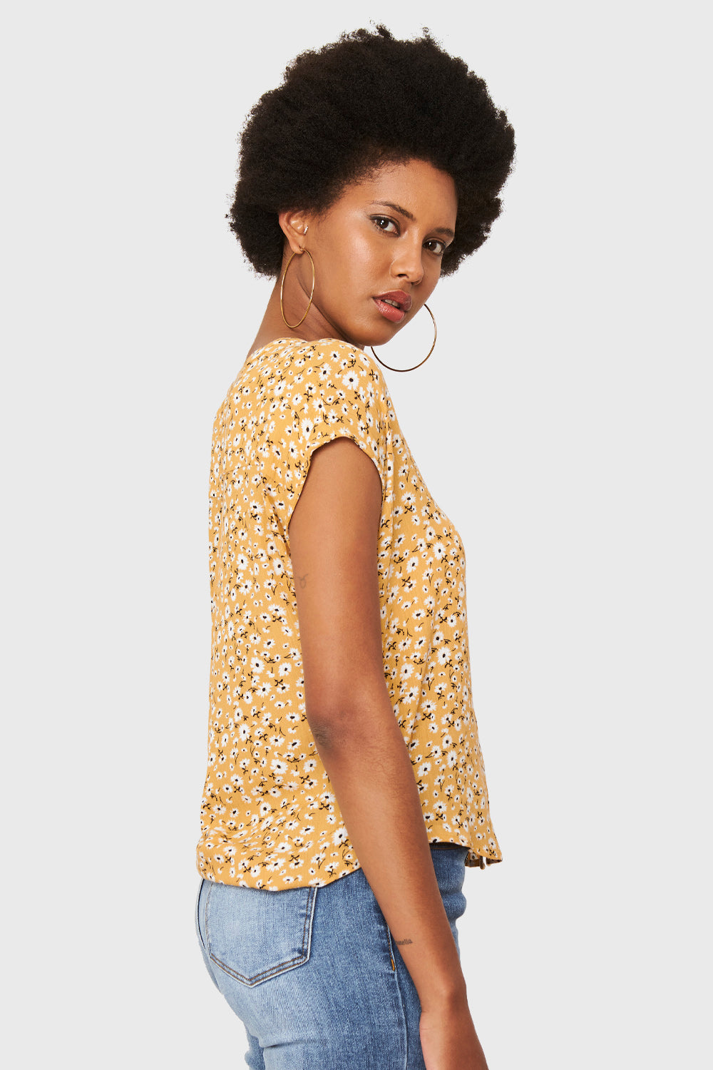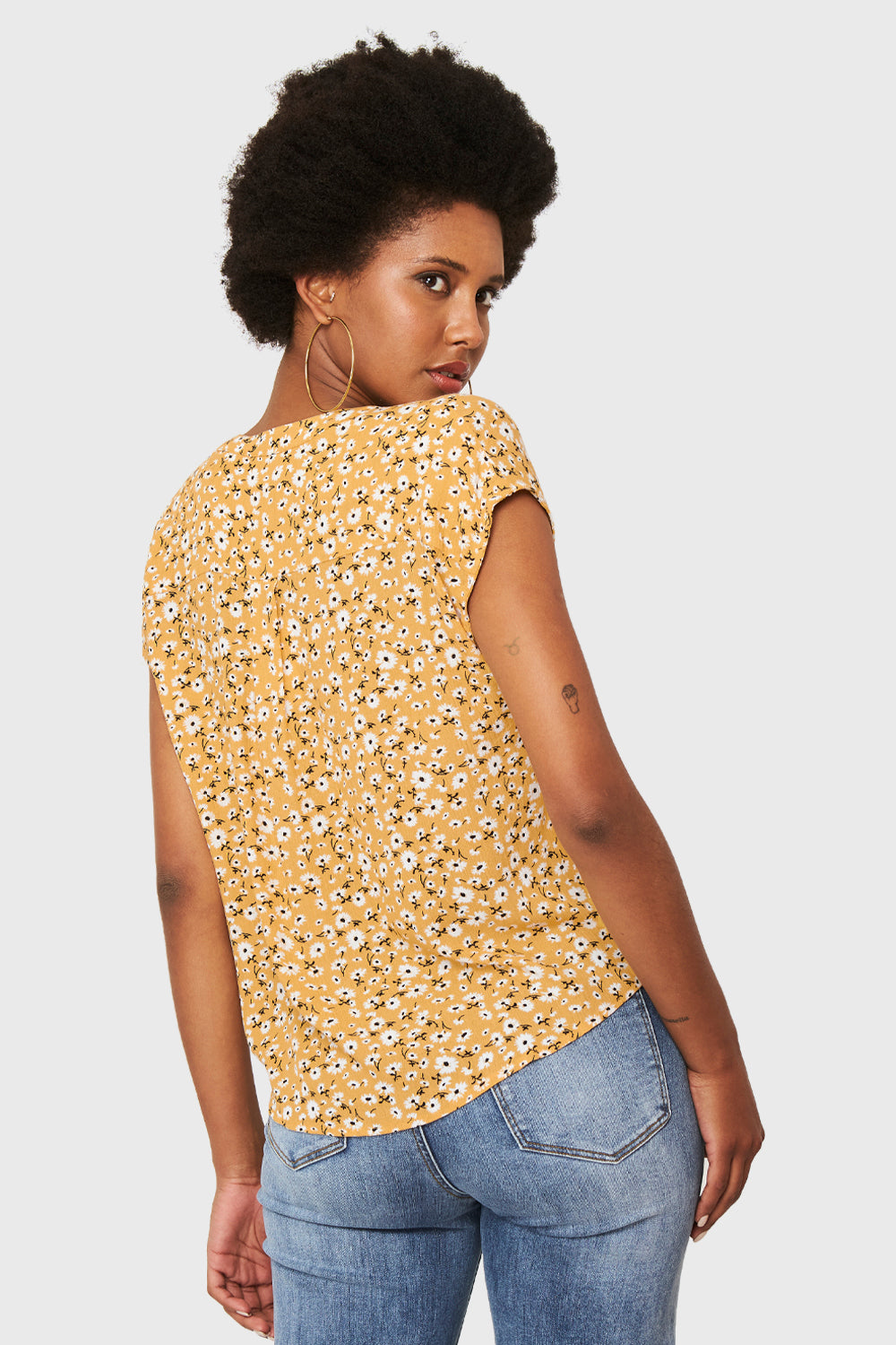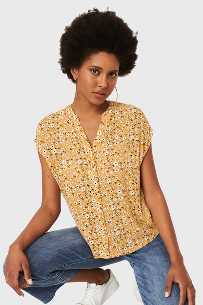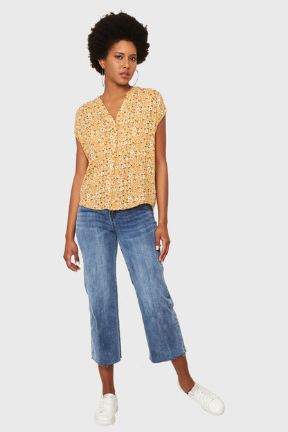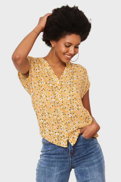 Blusa Floral Botones Amarillo
