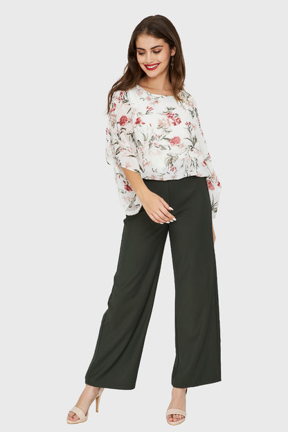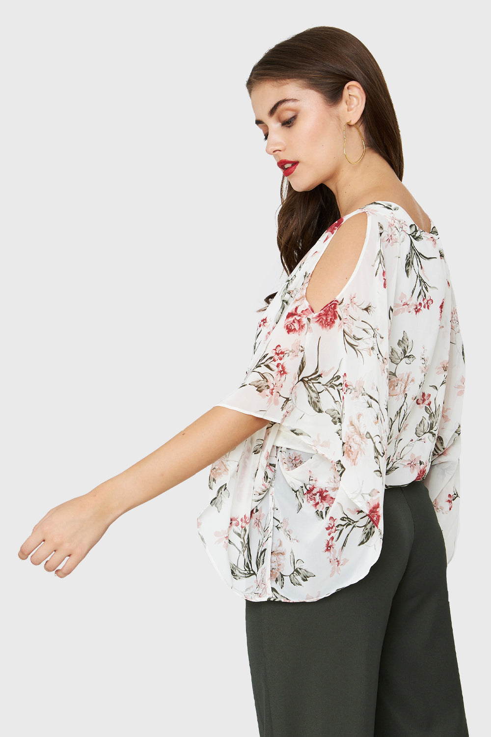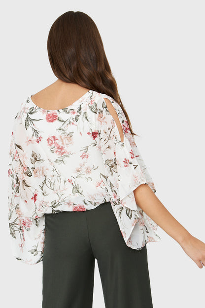 Características: Blusa corta print floral. Manga tipo kimono con abertura en hombros. Cuello redondo. Elástico en la basta. Posee forro.