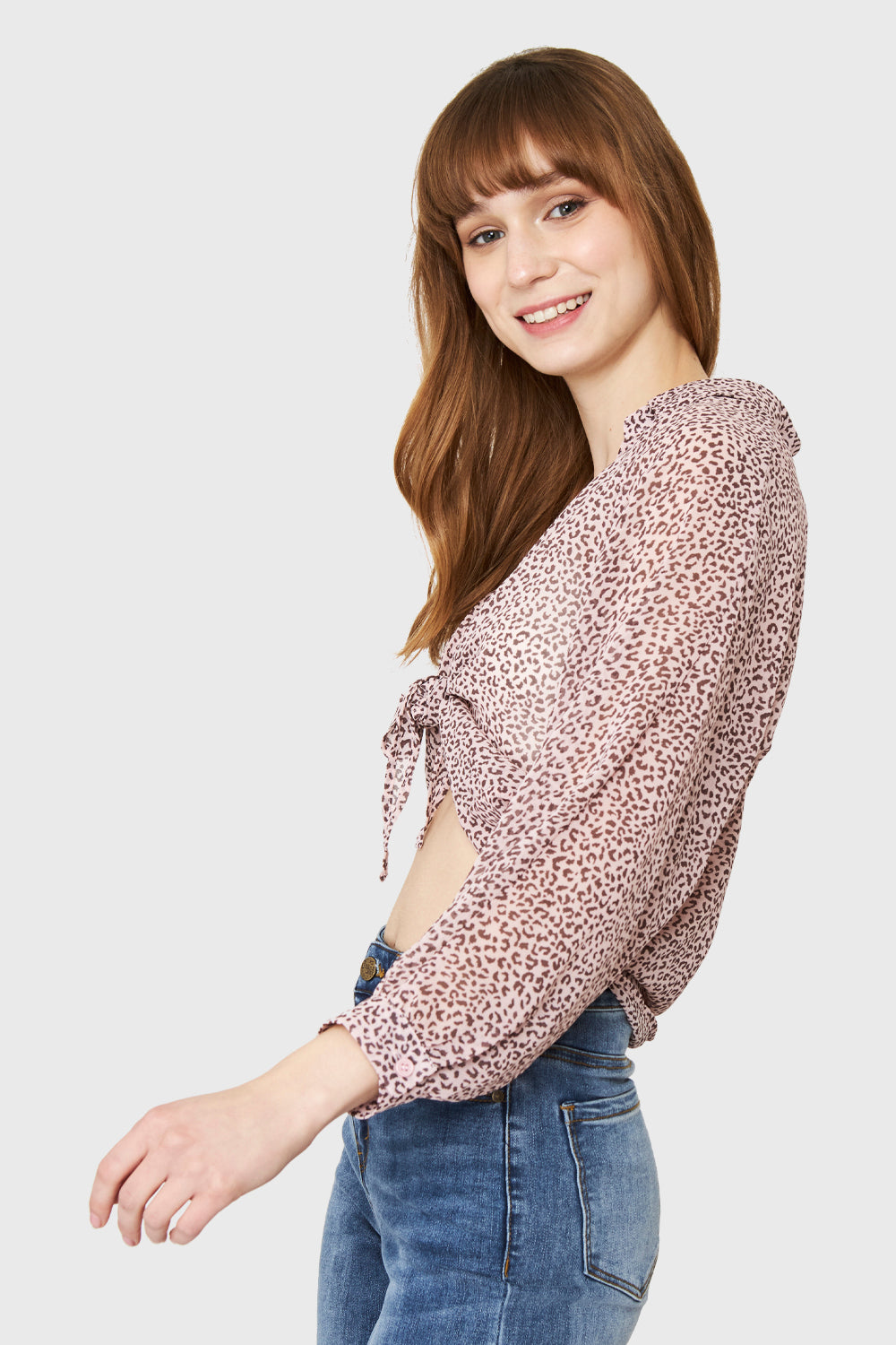 Características: Blusa corta animal print con nudo de ajuste. Semi transparente. No incluye peto.