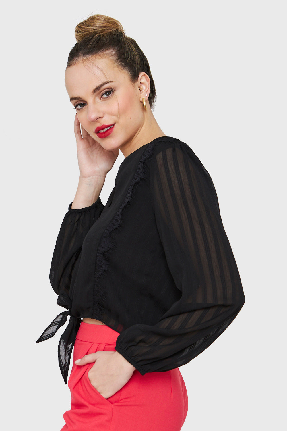 Blusa Nudo Detalle Encaje Negro