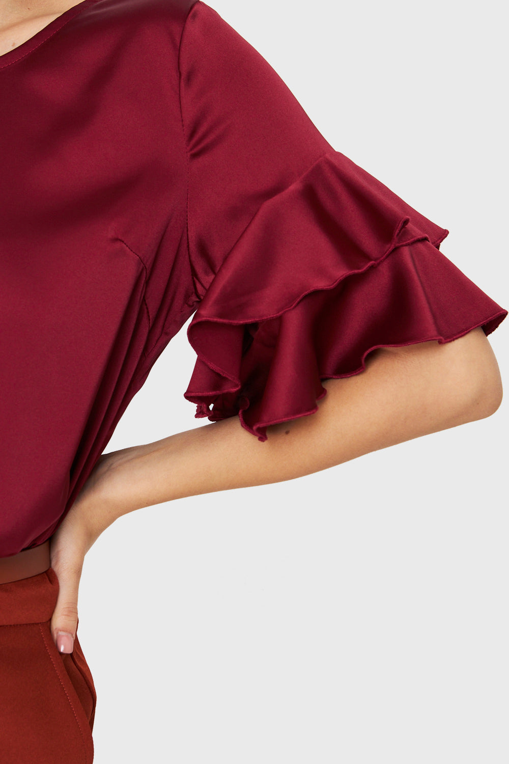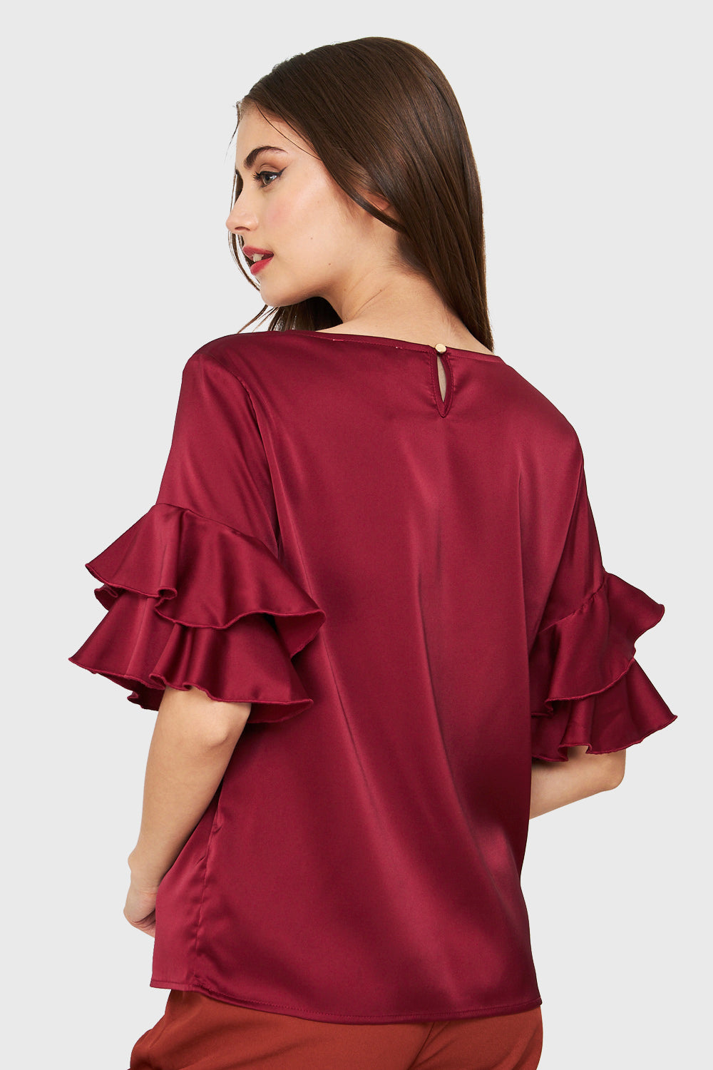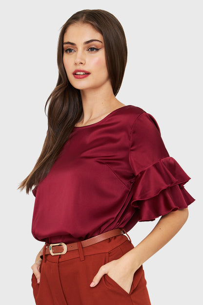 Blusa Tipo Satín Vuelos Burdeos