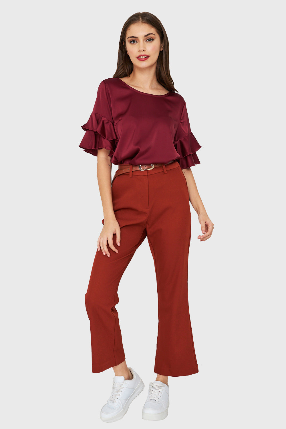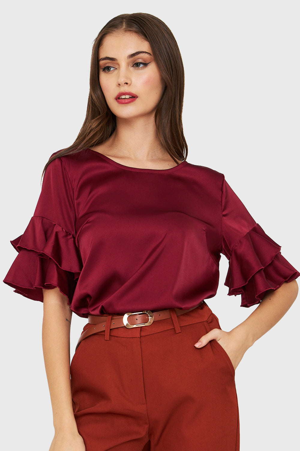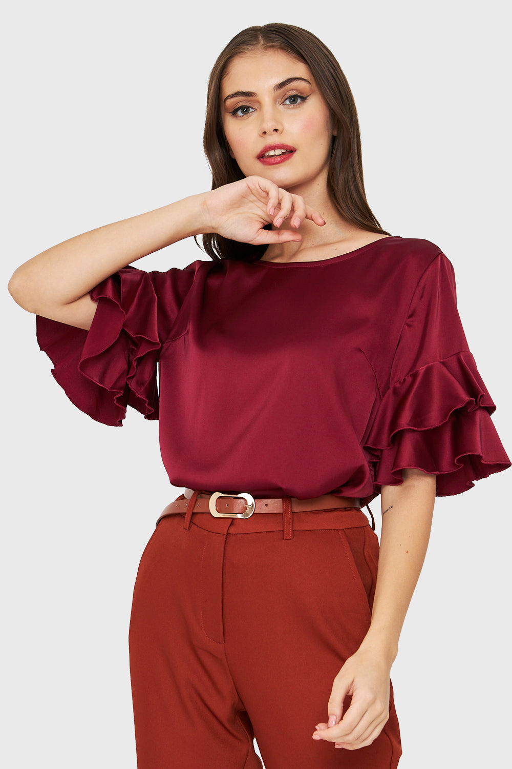 Blusa Tipo Satín Vuelos Burdeos